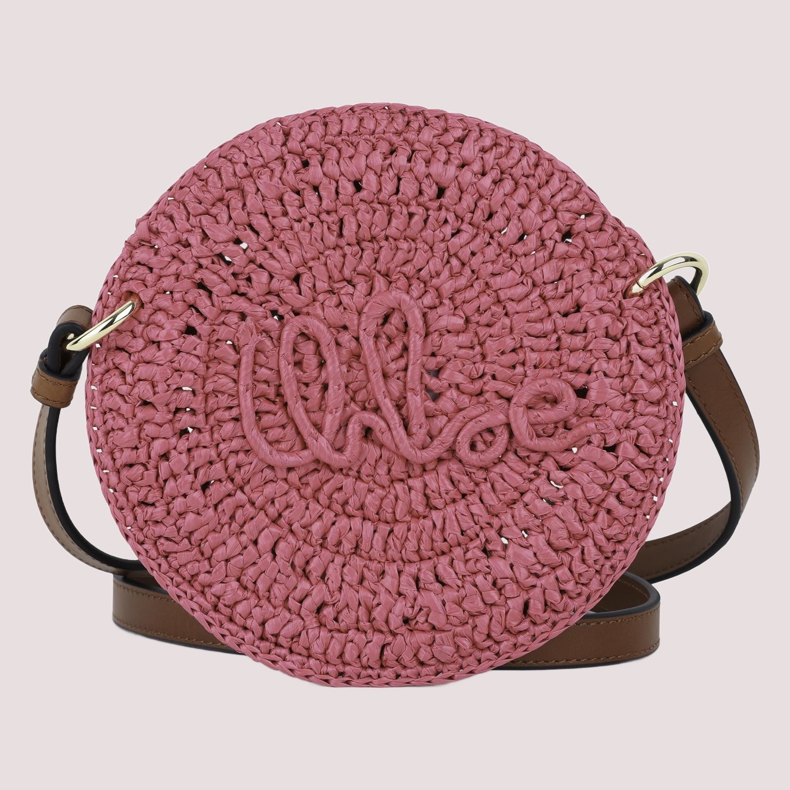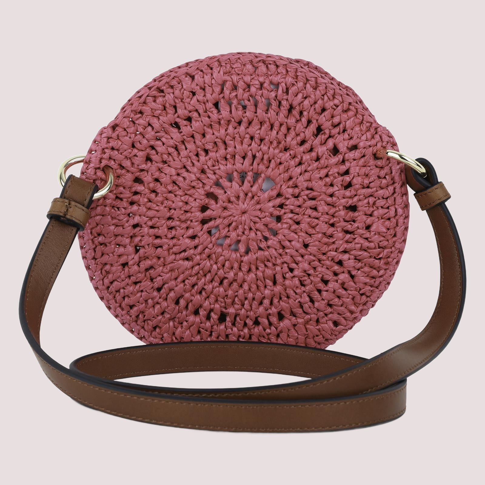 Borsa a tracolla arrotondata in tessuto intrecciato colorato, tracolla in pelle di vacchetta (origine: Cina, concia al cromo), chiusura a scatto, logo Chloé intrecciato in caratteri scritti a mano sul davanti. Diametro: 18 cm. Lunghezza tracolla: 90 cm. Ispirata all'abbigliamento femminile.