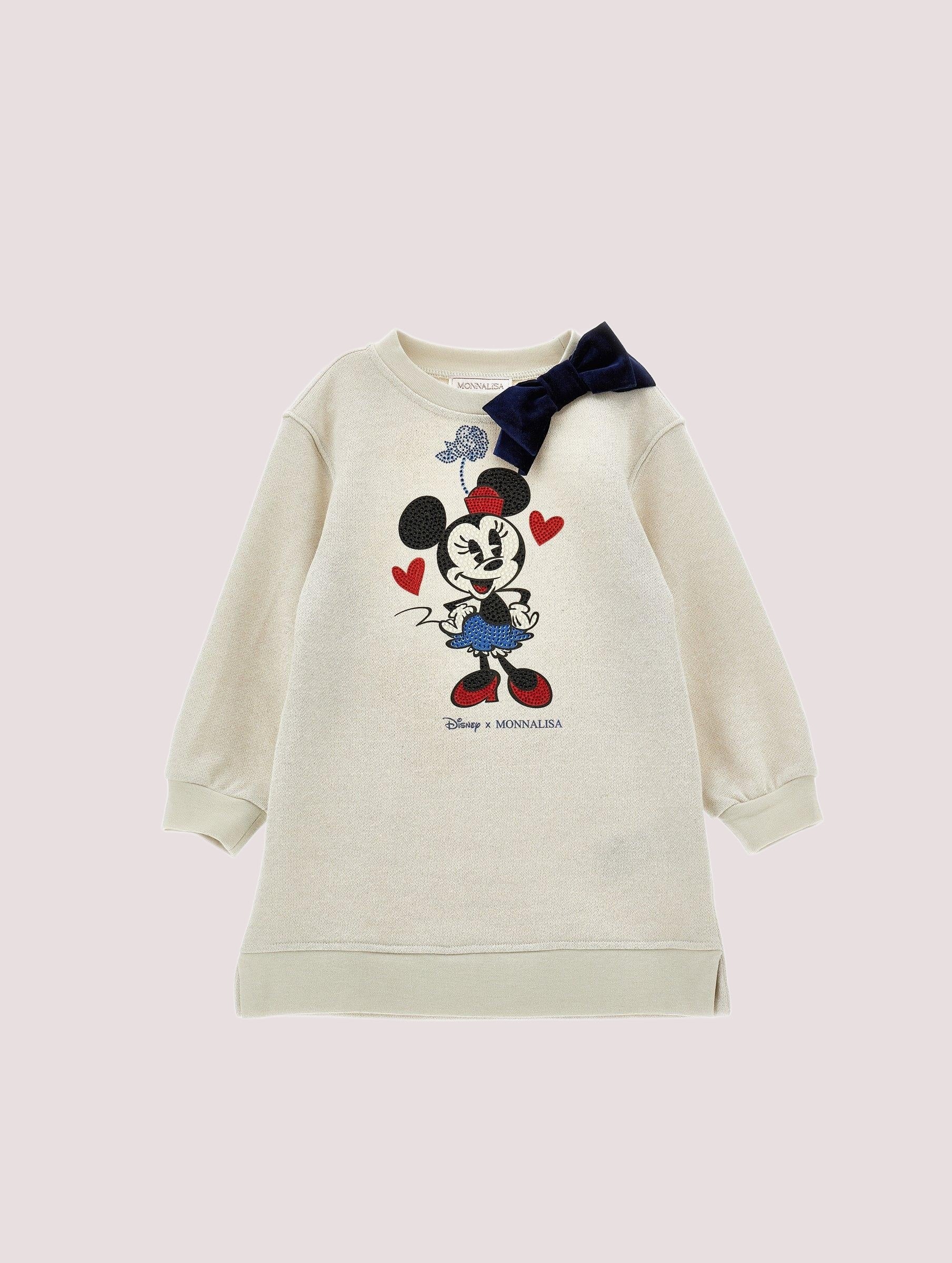 Un abito felpa che unisce comfort e stile. Con una stampa di Minnie, è perfetto per le giornate di festa. Il dettaglio del fiocco aggiunge un tocco di eleganza. Ideale per compleanni o eventi speciali, abbinato a stivaletti per un look glamour.