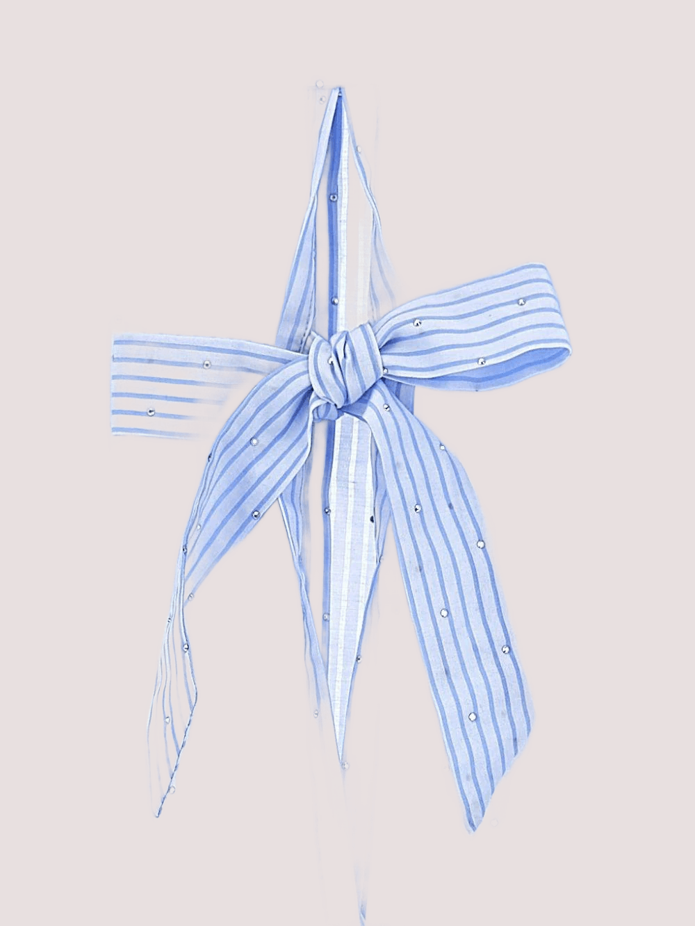 Camicia con design a righe, colletto classico, decorazione a strass, dettaglio fiocco, maniche corte.