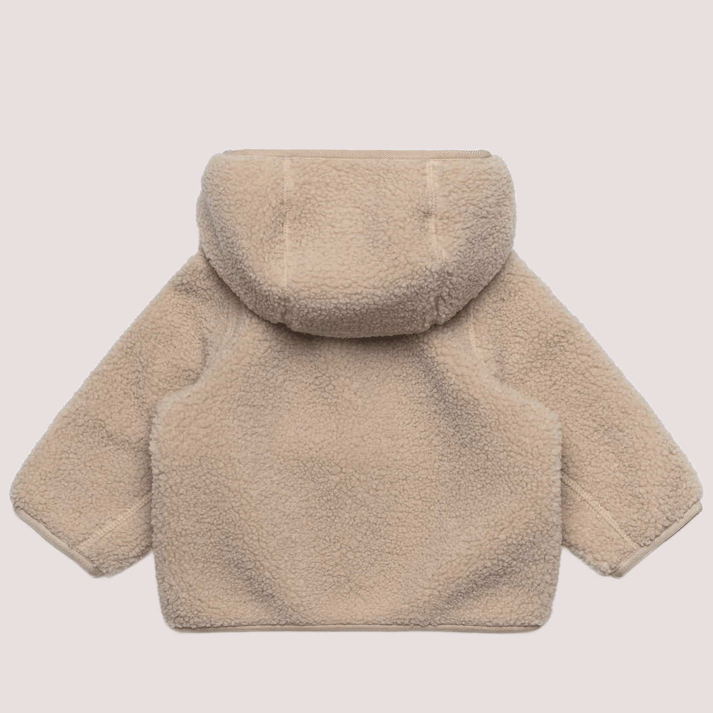 Ecopelliccia beige in eco-shearling, a maniche lunghe, con cappuccio, chiusura frontale con zip. È decorata con patch logato gommato sul petto.Composizione: 100%poliestere