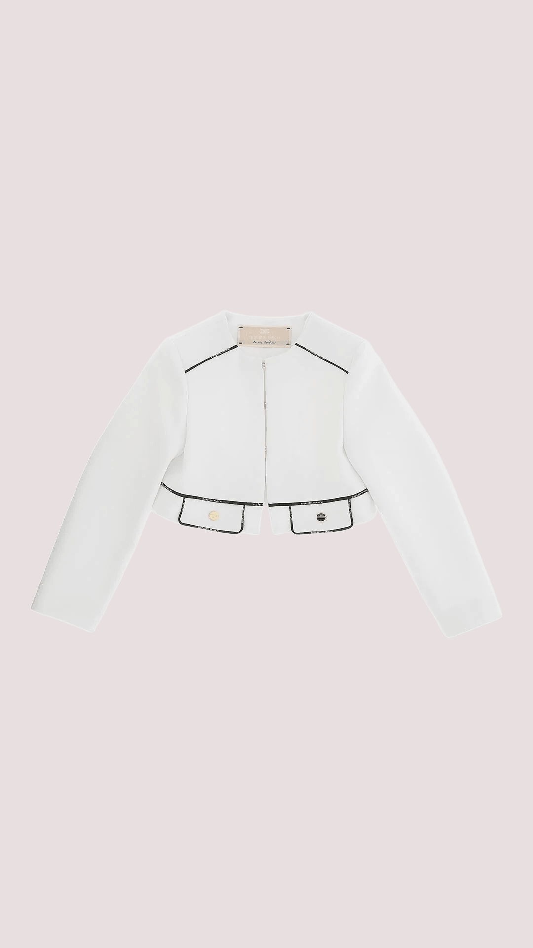 • Giacca in crepe con pattine e piping logato avorio/nero EFGC073 GA022 /0100 ELISABETTA FRANCHI La Mia Bambina