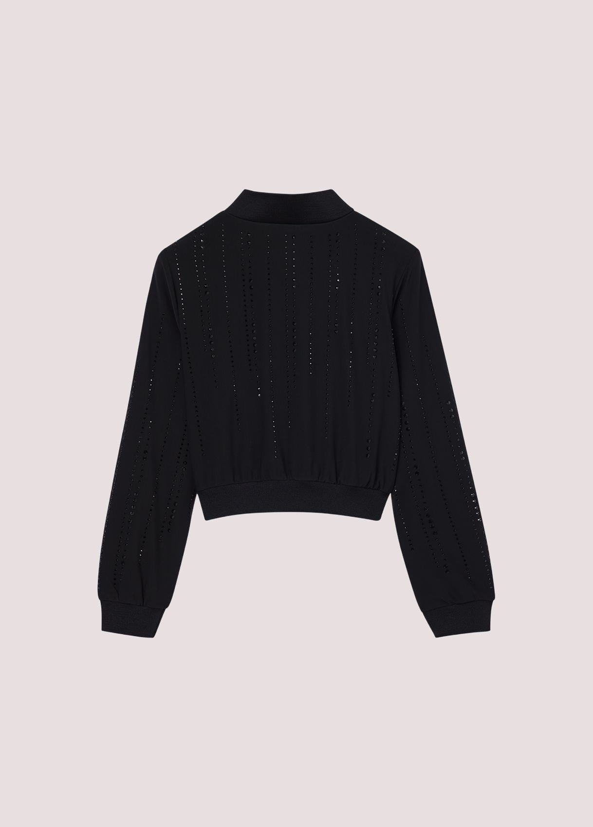 Giacca in jerseyRivestita in tulle con strassComode tasche /li>Polsini e orlo elasticizzatiChiusura con zip centrale