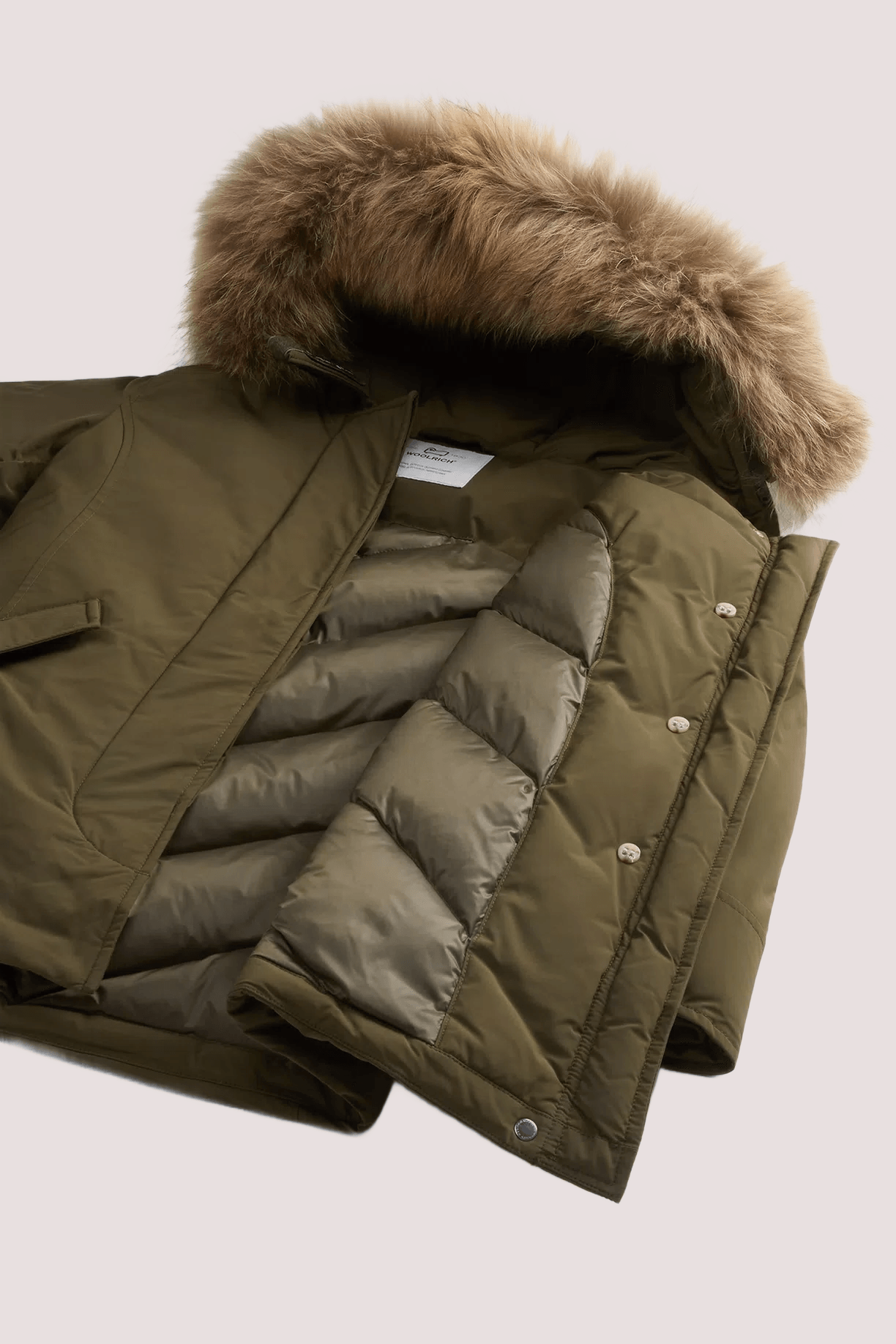 Prepara la tua piccola esploratrice ad affrontare l'inverno in pieno stile Woolrich. L'Arctic Parka da bambina è realizzato in tessuto Urban Touch, idrorepellente e resistente al vento. Imbottito in piuma d'anatra per garantire un calore eccezionale anche nelle giornate più fredde. Completano il design il cappuccio con pelliccia di procione rimovibile, la chiusura con zip bidirezionale e bottoni, le pratiche tasche con patta e i polsini a costine nascosti. Un capo versatile, funzionale e confortevole, pensato per accompagnarla in ogni avventura invernale.