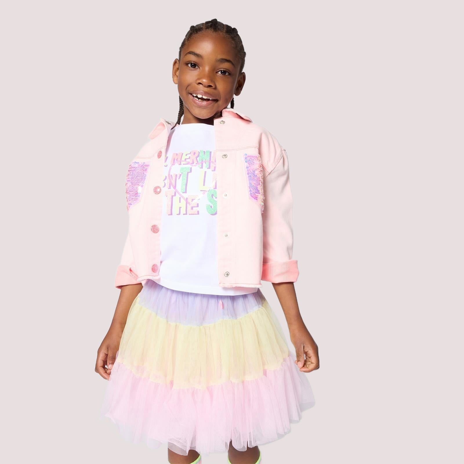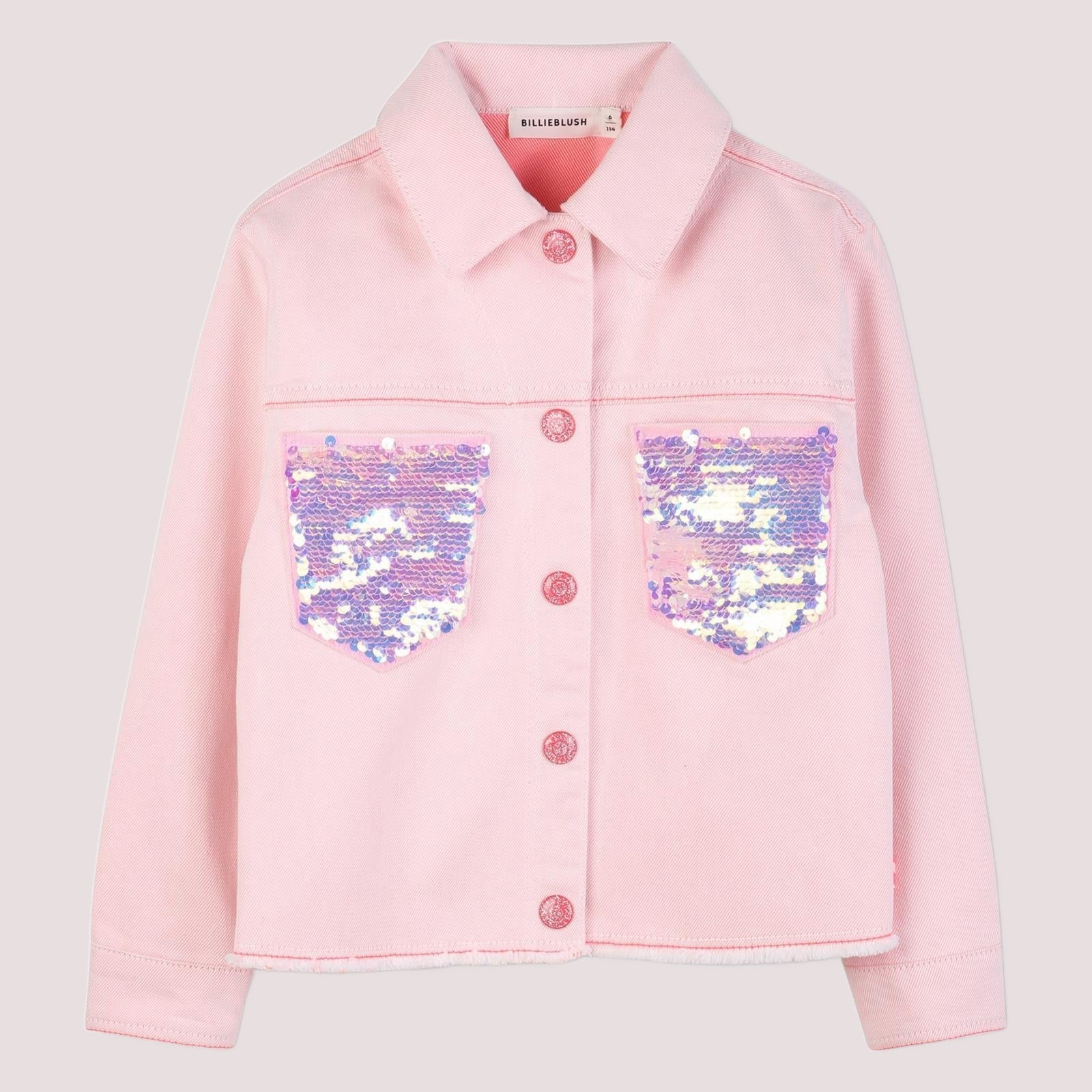 Giacca in twill bicolore con 2 tasche con paillettes. Chiusura con eleganti bottoni automatici.