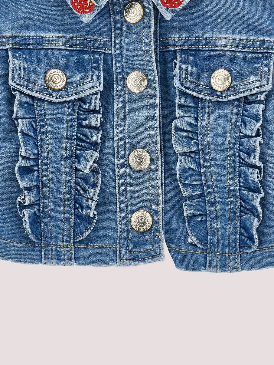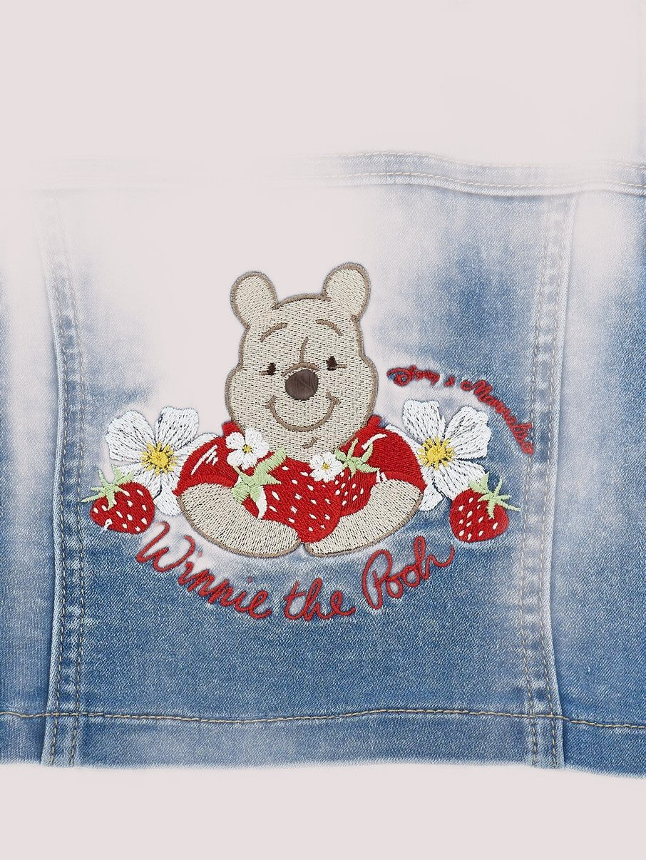 Il giubbotto in denim, decorata con patch di Winnie the Pooh, romantiche rouches e delicati dettagli in pizzo, è perfetta per le uscite di primavera. Rendila parte delloutfit abbinandola a un abito casual o a pantaloni sportivi per un look giocoso e alla moda.