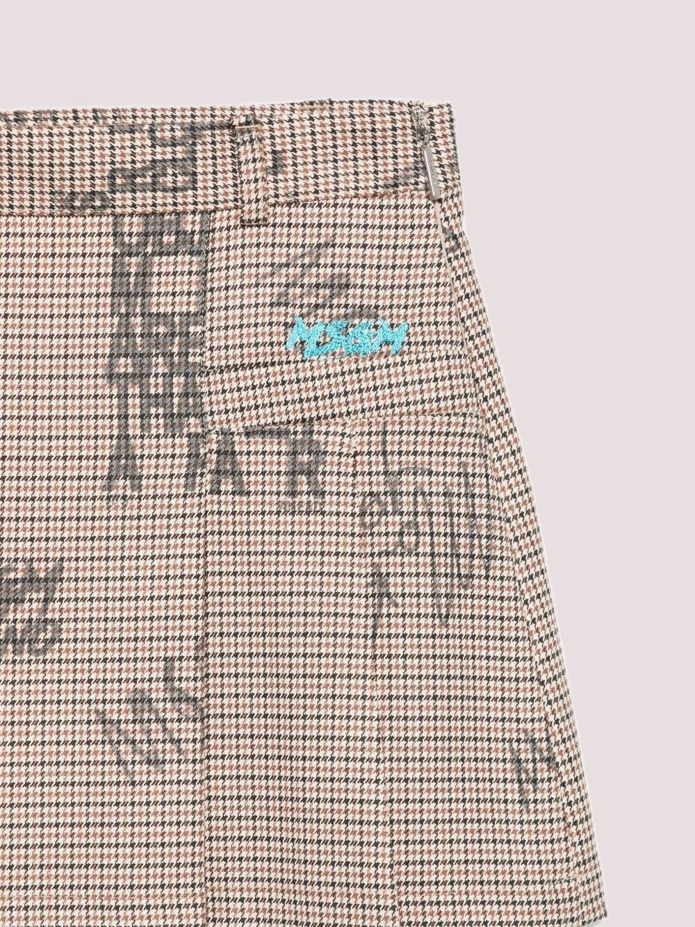 Gonna di colore marrone, stampa grafica con motivo pied de poule, design plissettato, chiusura con cerniera nascosta, logo ricamato.