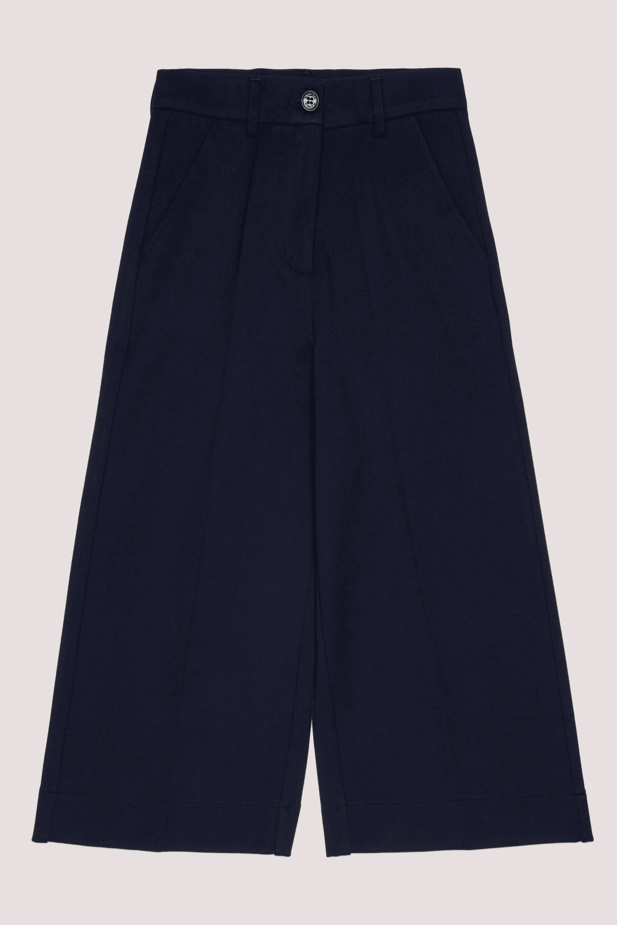 Pantaloni con logo e taglio cropped a gamba ampia. Presentano una costruzione sartoriale con piega stirata e patch con logo applicata sul retro.Chiusura frontale con bottone e zipGamba ampia con fondo drittoTasche lateraliPatch con logo applicata sul retro