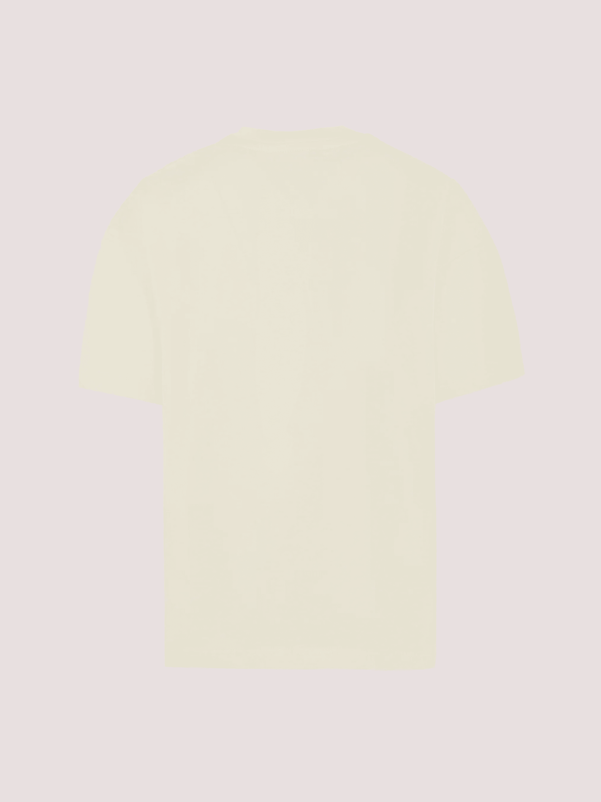 T-shirt avorio in cotone, con maniche corte e girocollo a costine. È decorata con stampa gatto, logo e perle sulla parte anteriore. Made in ItalyComposizione: 100%cotone