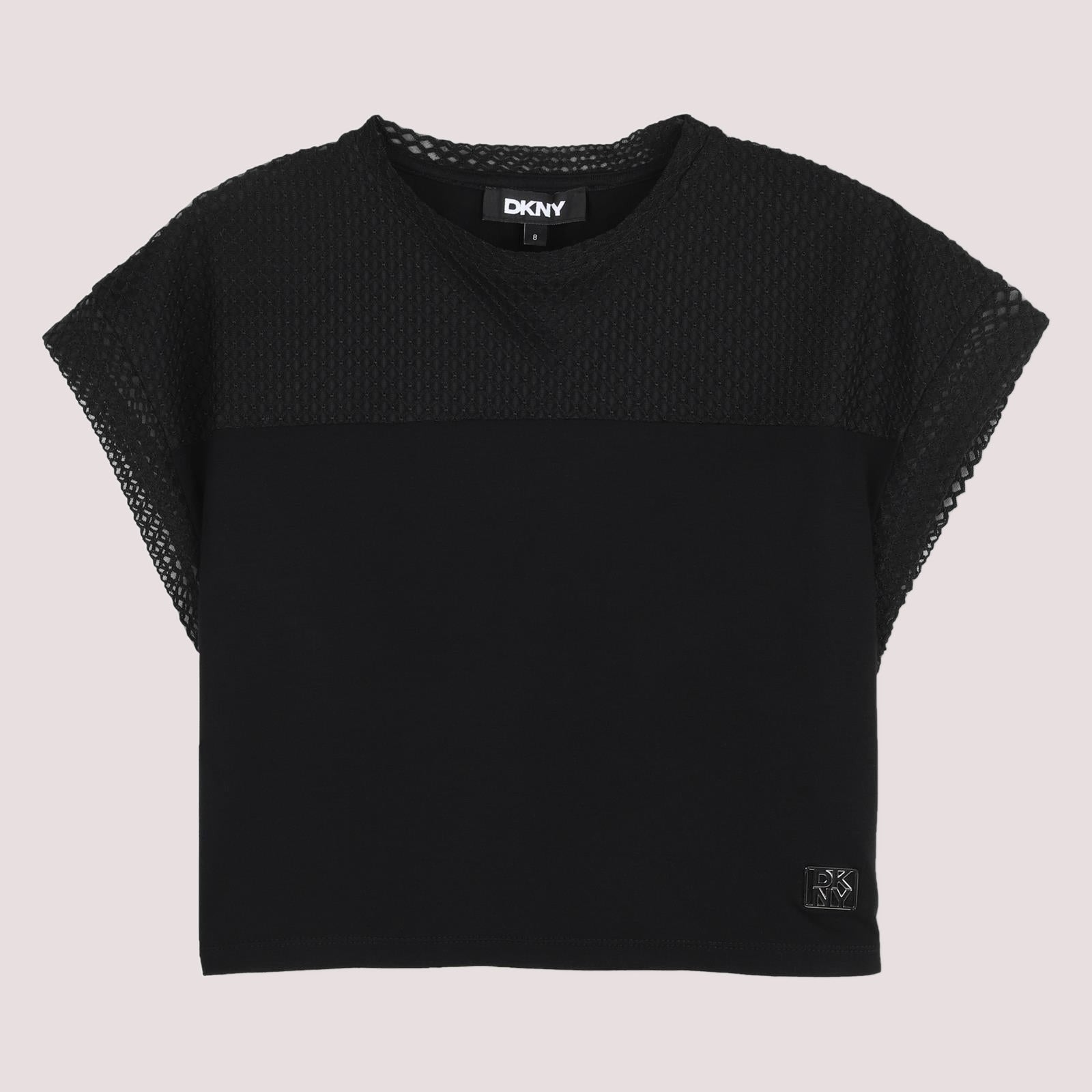 T-shirt a maniche corte in jersey, 95% viscosa, 5% elastan. Rete fantasia nella parte superiore della t-shirt. Targhetta metallica DKNY sul davanti.