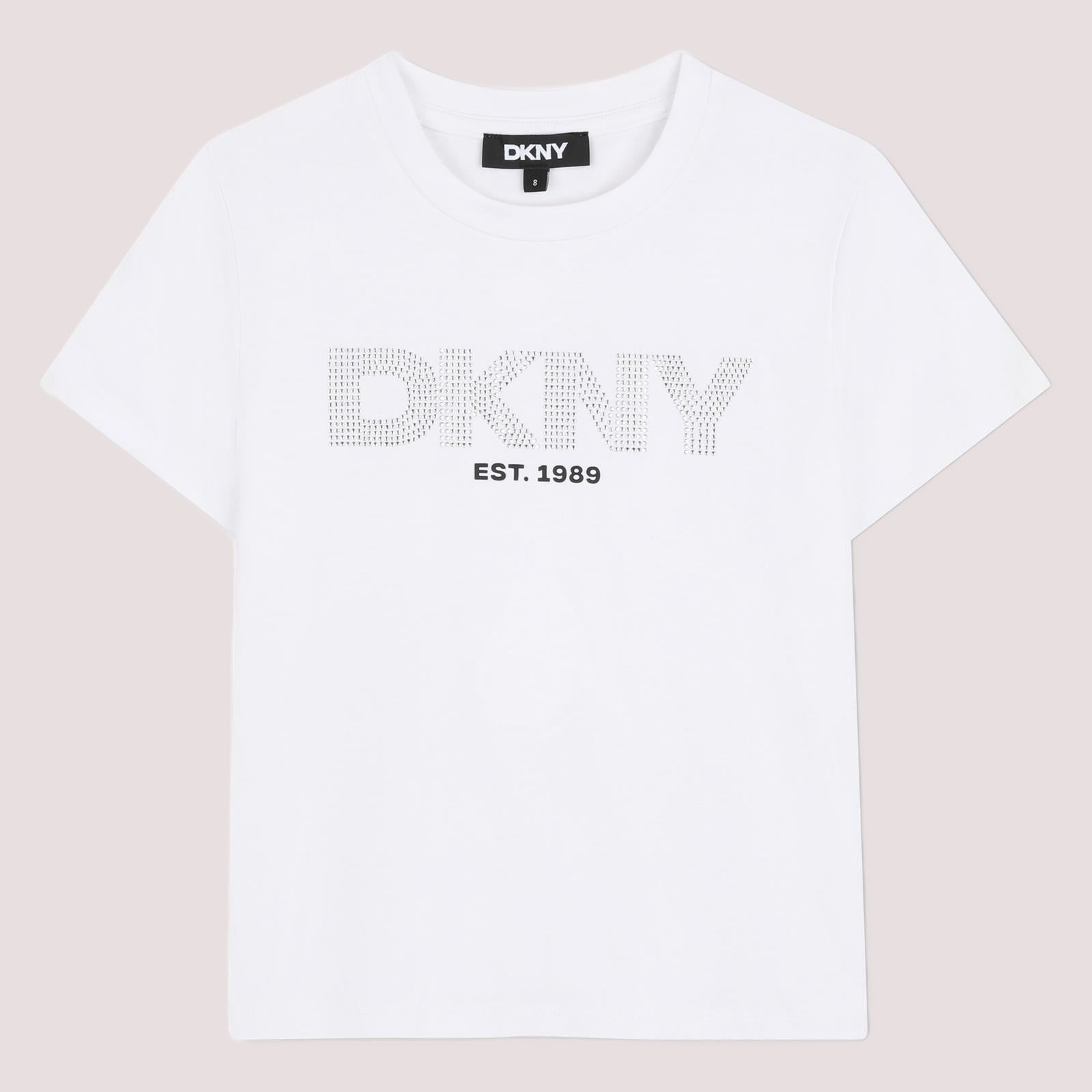 T-shirt a maniche corte in jersey, 95% viscosa, 5% elastan. Logo DKNY sul davanti che abbina stampa e strass.