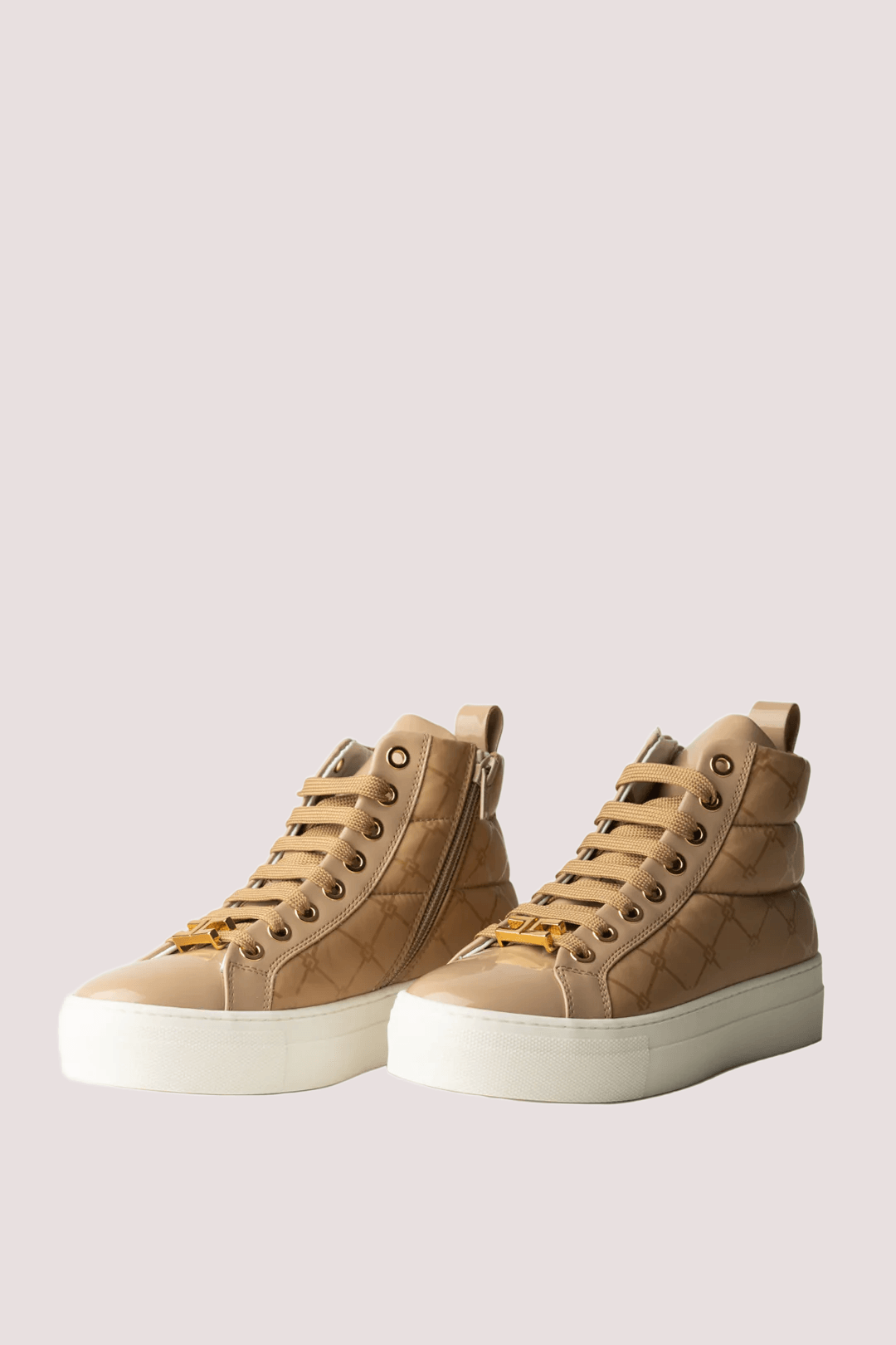 Un'eleganza decisa e contemporanea contraddistingue queste sneakers alte firmate Elisabetta Franchi La Mia Bambina, pensate per bambine dallo stile determinato. La vernice lucida, effetto specchio, avvolge tutto il modello conferendogli unanima urbana ma ricercata. Il dettaglio del logo dorato posizionato sui lacci aggiunge un elemento di riconoscibilità prezioso, mentre la zip laterale consente una calzata rapida e comoda. La suola alta bianca crea un contrasto netto che slancia la figura e accompagna facilmente outfit casual chic o streetwear. Perfette per essere indossate con jeans, leggings o abiti sportivi, queste sneakers trasformano ogni passo in un gesto di stile. Il mix tra praticità e personalità le rende ideali per la scuola come per il tempo libero in città.