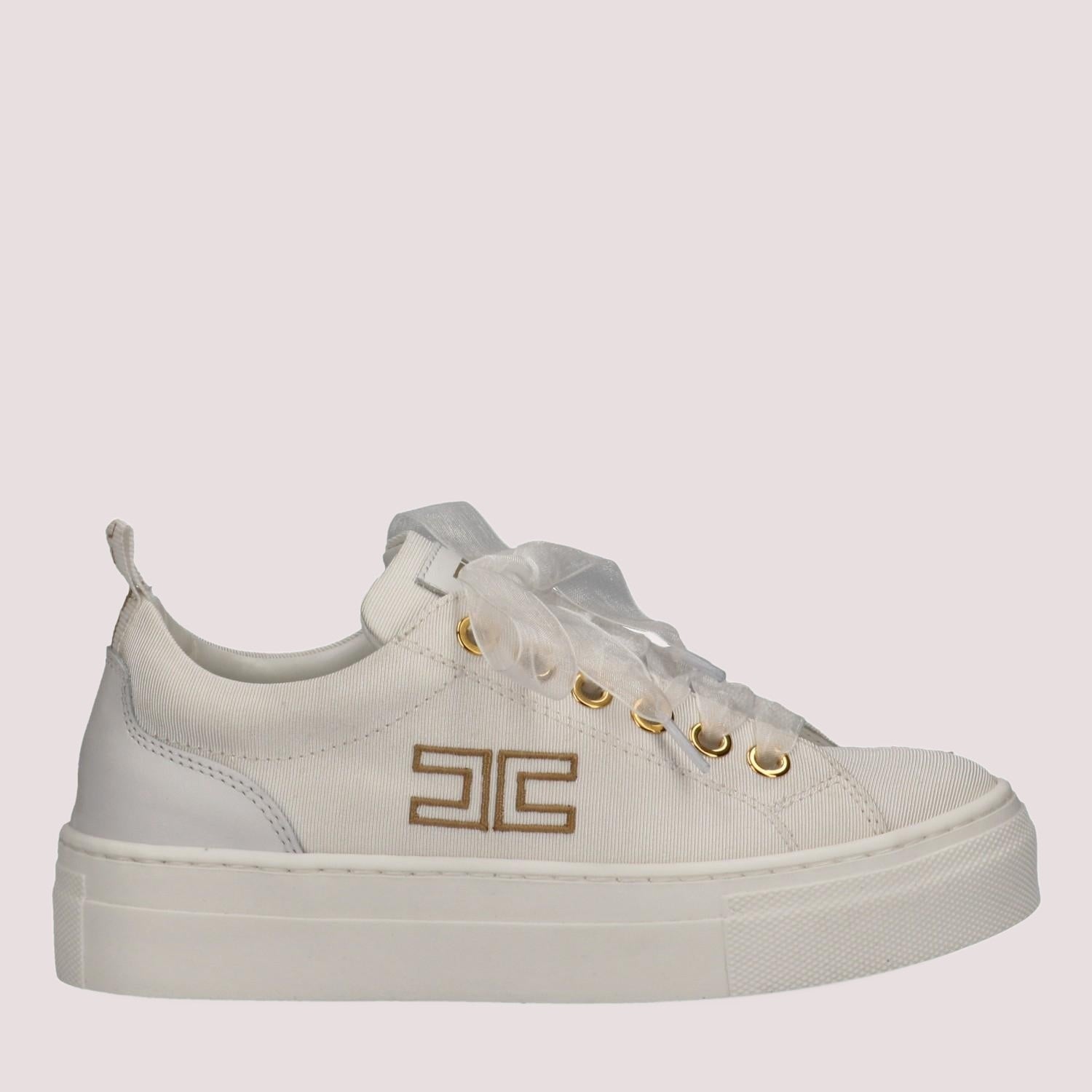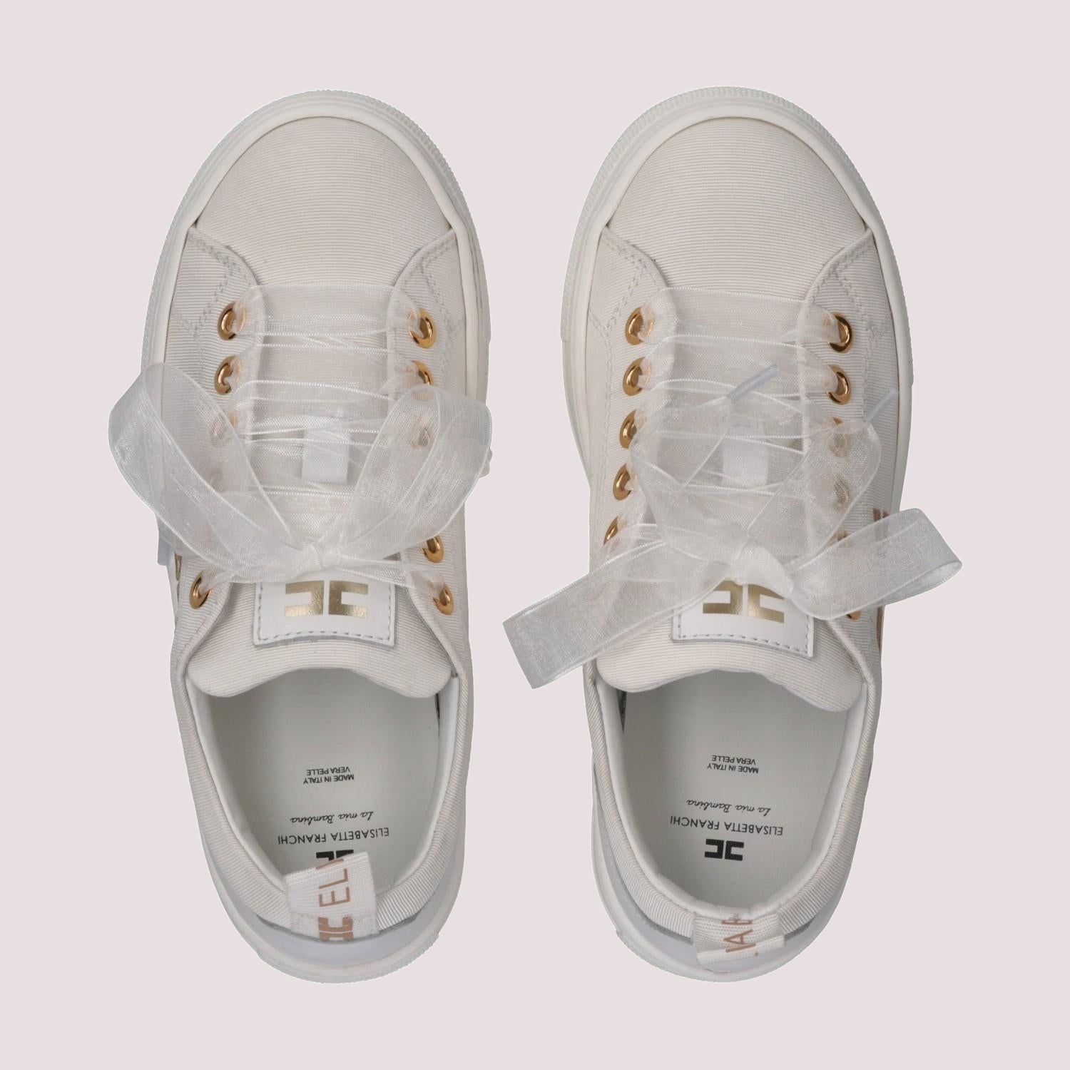 • Sneakers basse in tessuto con logo ricamato ivory white F4A9 E0528 1256 /0139 ELISABETTA FRANCHI La Mia Bambina