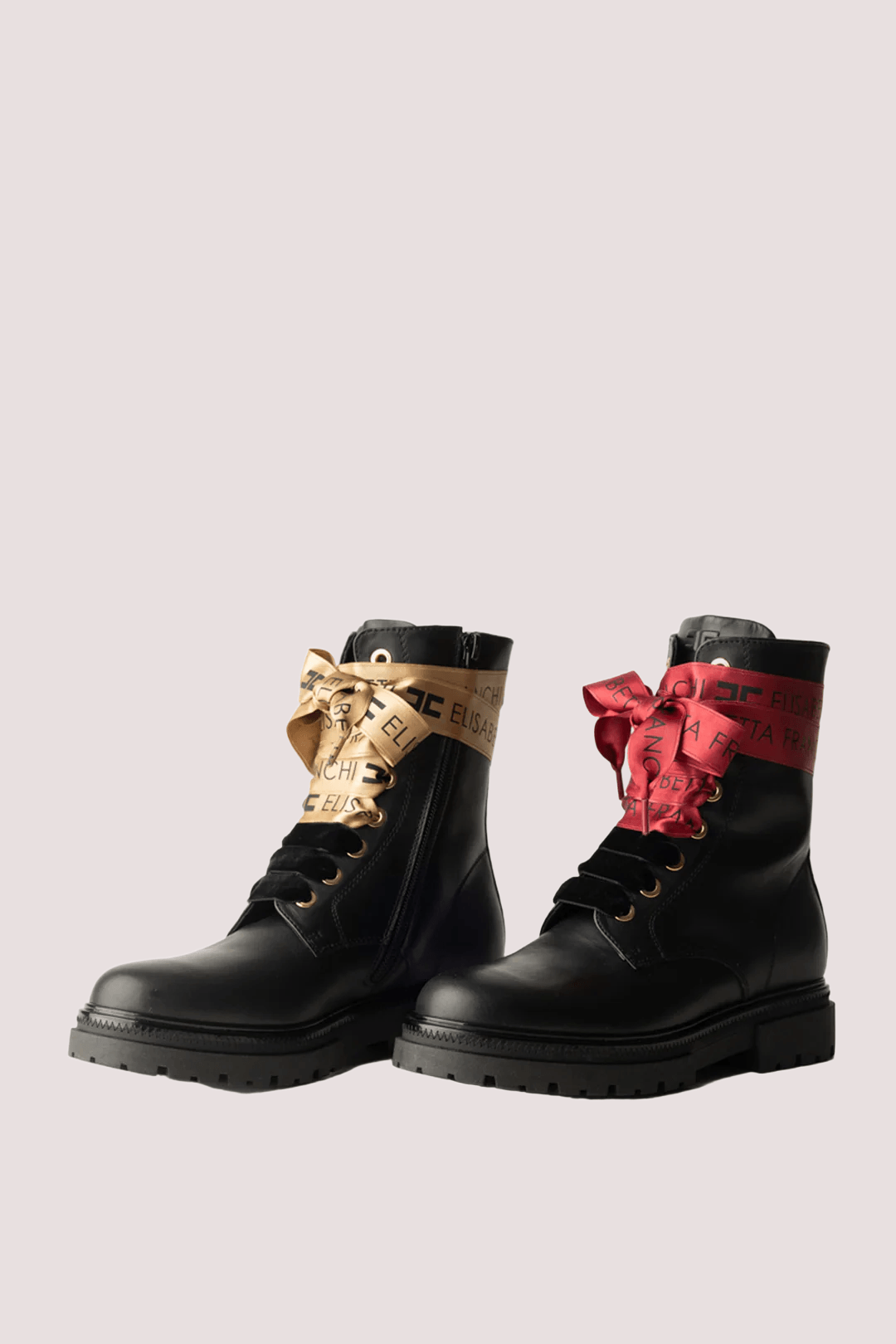 Una calzatura versatile e stilosa, che darà un tocco distintivo ai look di tutte le età: innamorati con noi di questi tronchetti Elisabetta Franchi La mia Bambina, che arricchiscono il design essenziale del modello con lacci in velluto e lacci logati, proposti in due varianti di colore così da diventare vero e proprio ornamento dell'outfit.Comode e divertenti, perfetti per dare un twist giocoso ad un look elegantino di stagione o per aggiungere una nota colorata a leggings e denim, al servizio degli outfit più casual da scuola o tempo libero.