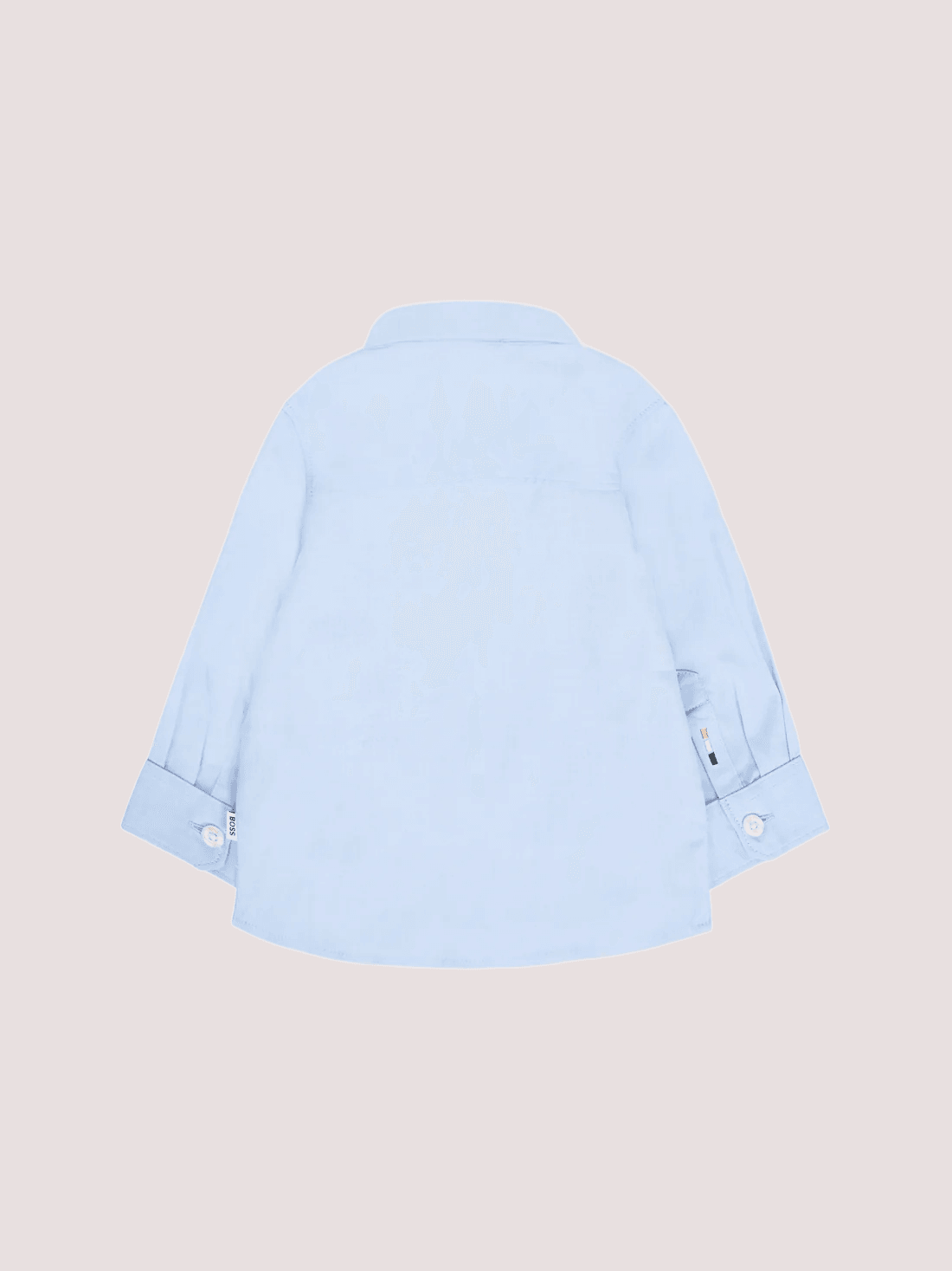Camicia azzurra in cotone, con maniche lunghe, colletto a punta, chiusura frontale con bottoni e chiusura sui polsi. È decorata con logo bianco ricamato sul petto e patch logato laterale.Composizione: 100%cotone