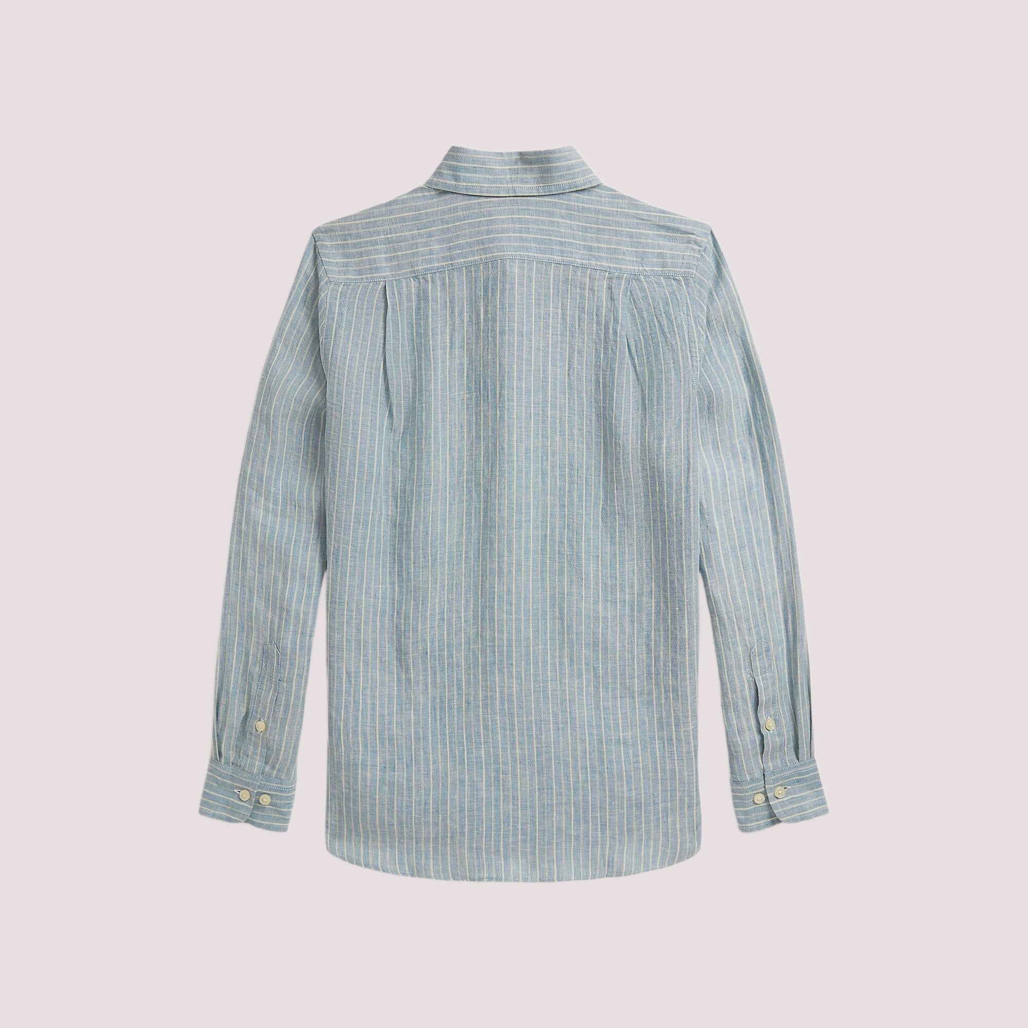Questa camicia è realizzata in lino leggero e poi lavata per una maggiore morbidezza. Il classico motivo a righe e il nostro esclusivo pony ricamato aggiungono un tocco di puro stile Polo.