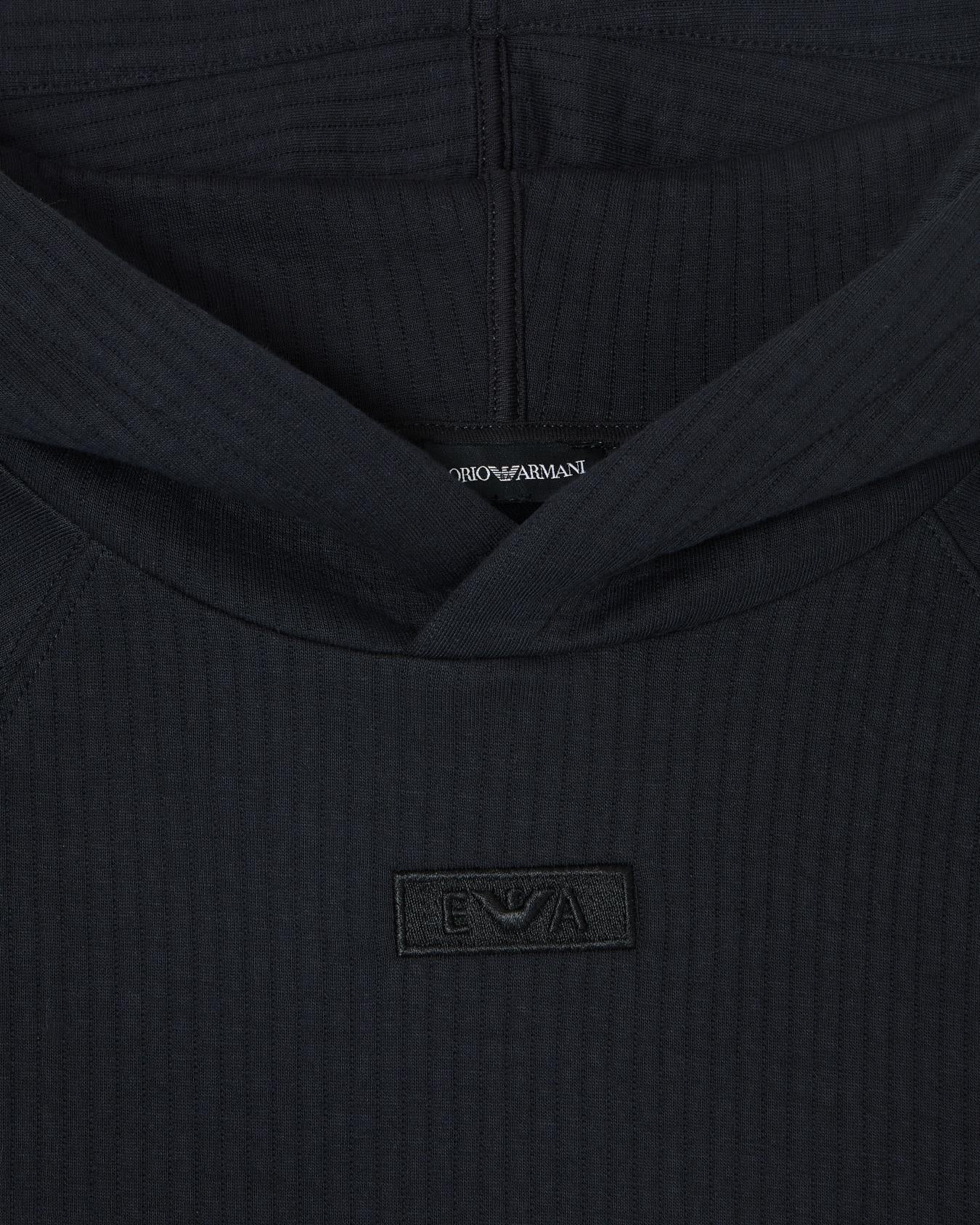Felpa con cappuccio realizzata in jersey dalla trama diagonale con un lieve effetto a rilievo che dona tridimensionalità al capo. Ricamo logo tono su tono.Tessuto: 70% cotone, 41% poliestere; dettagli in maglia: 98% cotone, 2% elastan