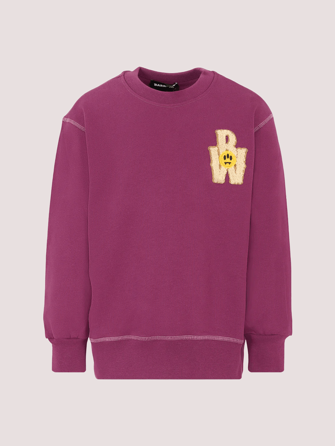 Felpa viola in cotone felpato, a maniche lunghe, con girocollo, polsini e orlo a costine. È decorata con logo in spugna e iconico smile giallo, ricamato, sul petto e stampa Bear sul retro. È dotata di portachiavi giallo logato.Composizione: 100%cotone
