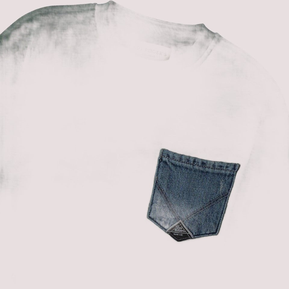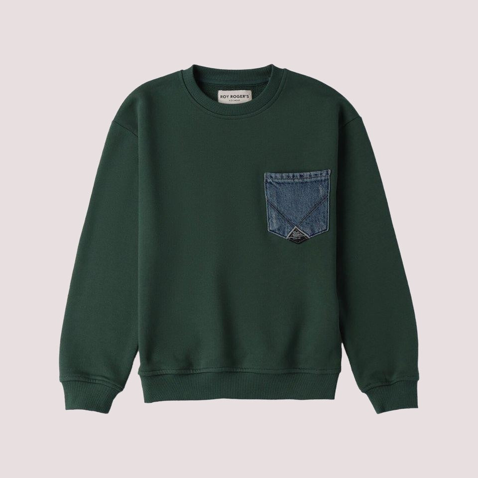 Felpa Roy Rogers, girocollo, polsini e orlo a costine, tasca applicata sul lato sinistro del petto, realizzata in denim blu, che richiama lo stile dei jeans e presenta un'etichetta nera con logo.