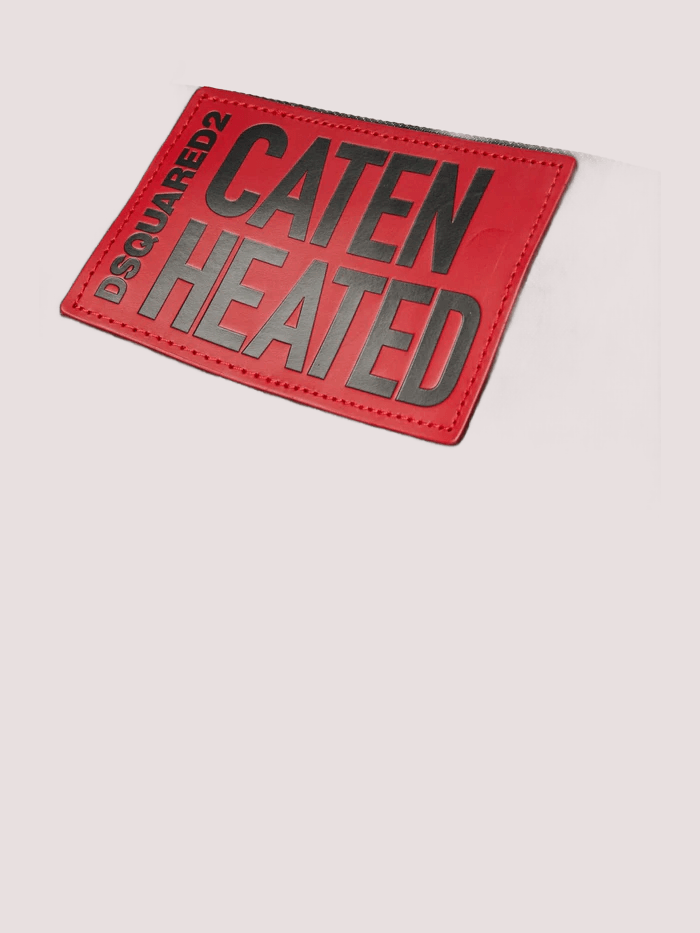 Jeans neri denim cinque tasche, con passanti per cintura e chiusura con bottoni sulla parte anteriore. Sono decorati con strappi all-over,e patch logato rosso sulla parte posteriore.