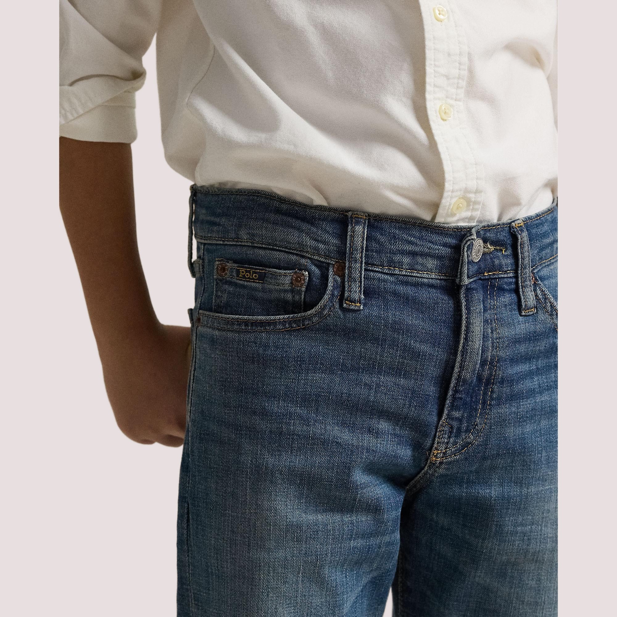 Questi jeans Sullivan Slim sono realizzati in denim leggero tinto indaco, con un tocco di elasticità per un maggiore comfort. Oltre al nostro iconico pony ricamato, presentano dettagli in metallo e un'etichetta "Polo Ralph Lauren" in finta pelle scamosciata sul retro.