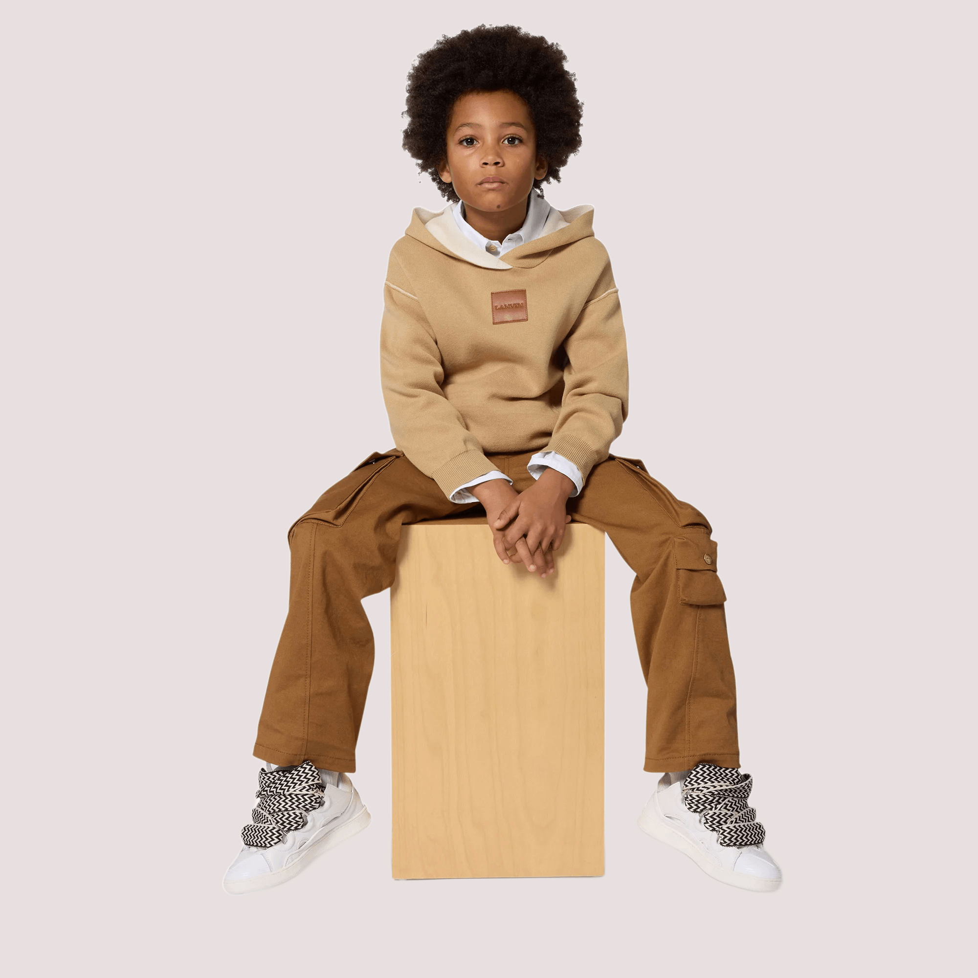 Questo maglione Lanvin unisce un look sportivo a un tocco di lusso. La felpa con cappuccio è disponibile in un colore beige-marrone chiaro, facile da abbinare e dal fascino senza tempo. Sul retro, la grande scritta Lanvin bianca aggiunge un dettaglio audace e sorprendente. Sul davanti, una toppa marrone sul petto riporta il nome del marchio in modo discreto.