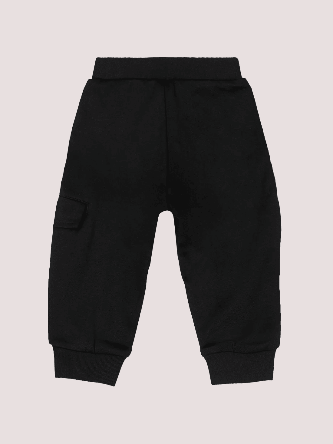 Pantaloni neri con vita elasticizzata, tasche laterali, tasca cargo su un lato e caviglie a costine. Sono decorati con logo gommato su un lato.Composizione: 62%viscosa - 33%poliammide - 5%elastan