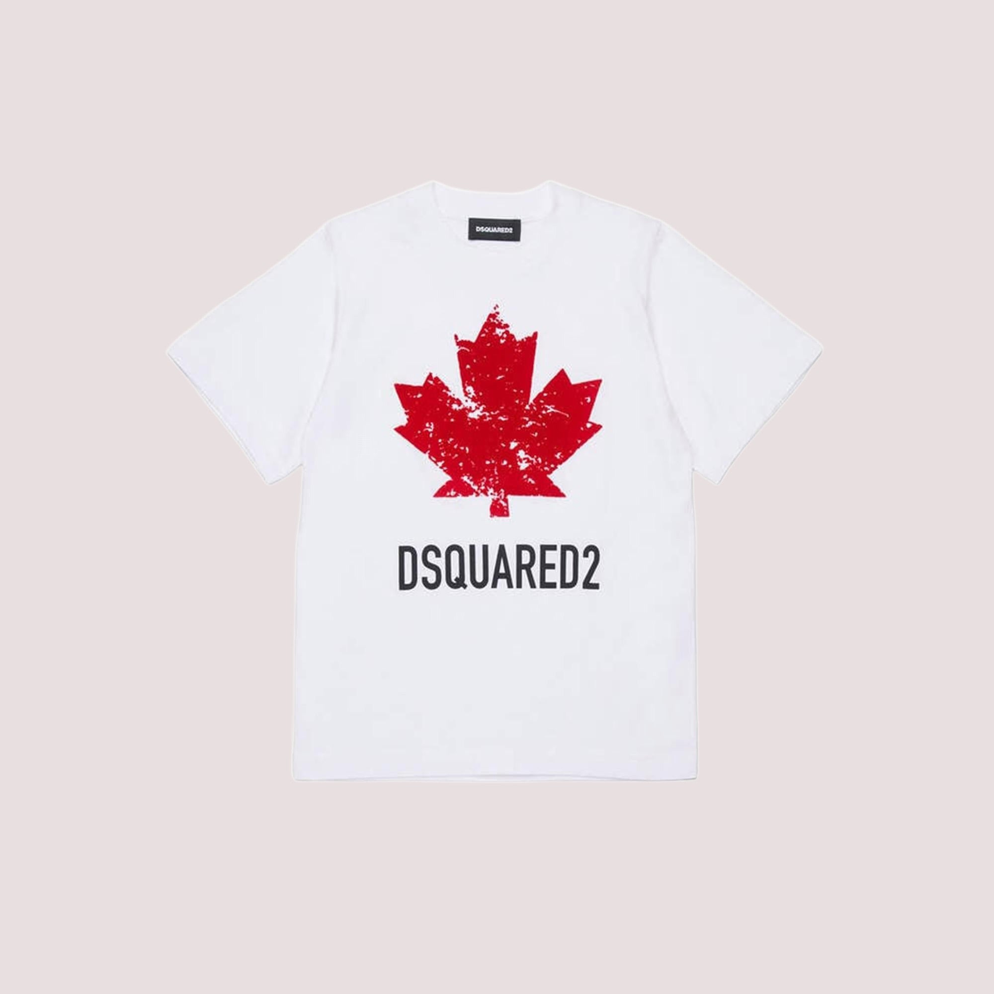 T-shirt bianca unisex realizzata in jersey di cotone. Presenta collo tondo, maniche corte e orlo dritto. È decorata con stampa logo sulla parte anteriore.