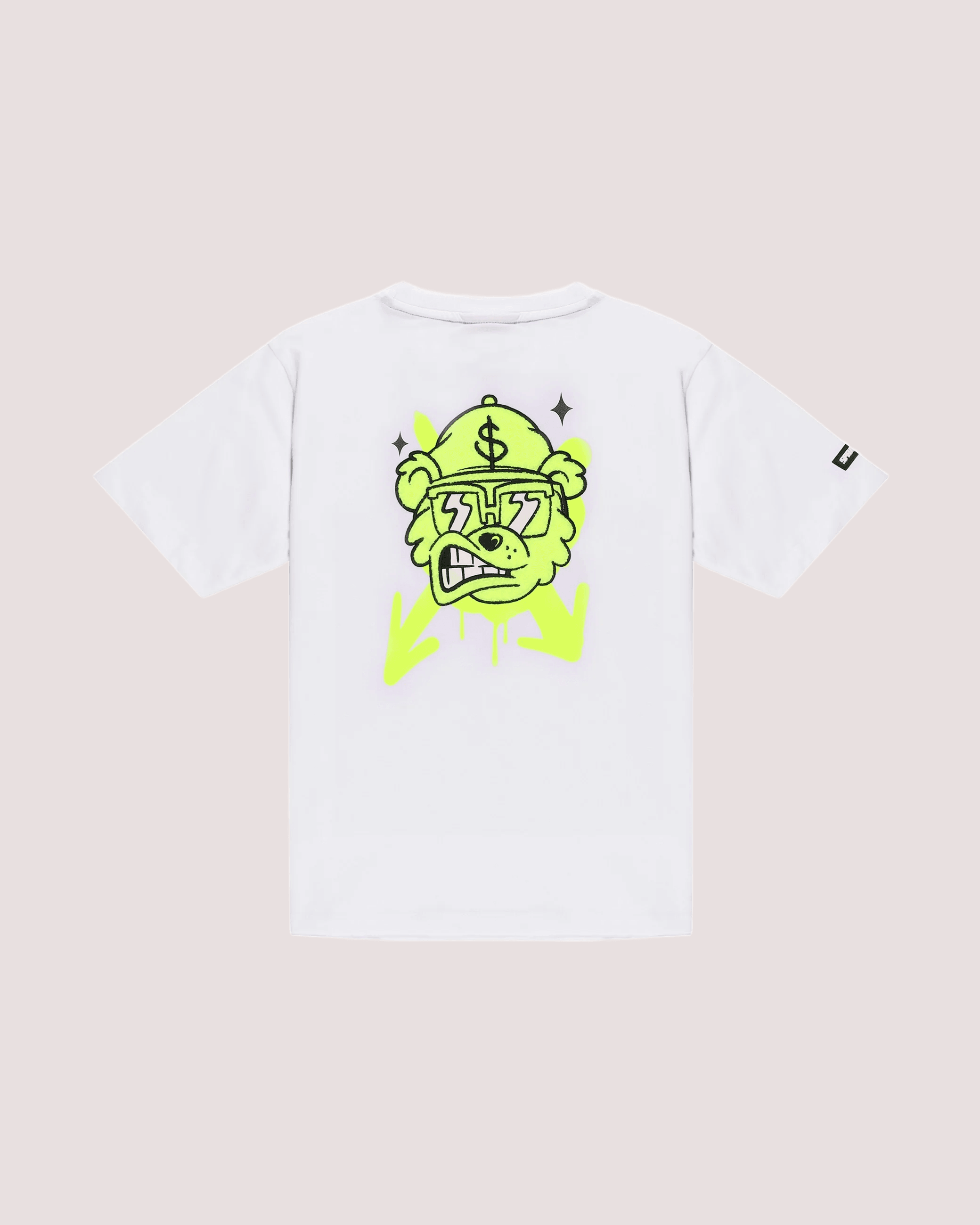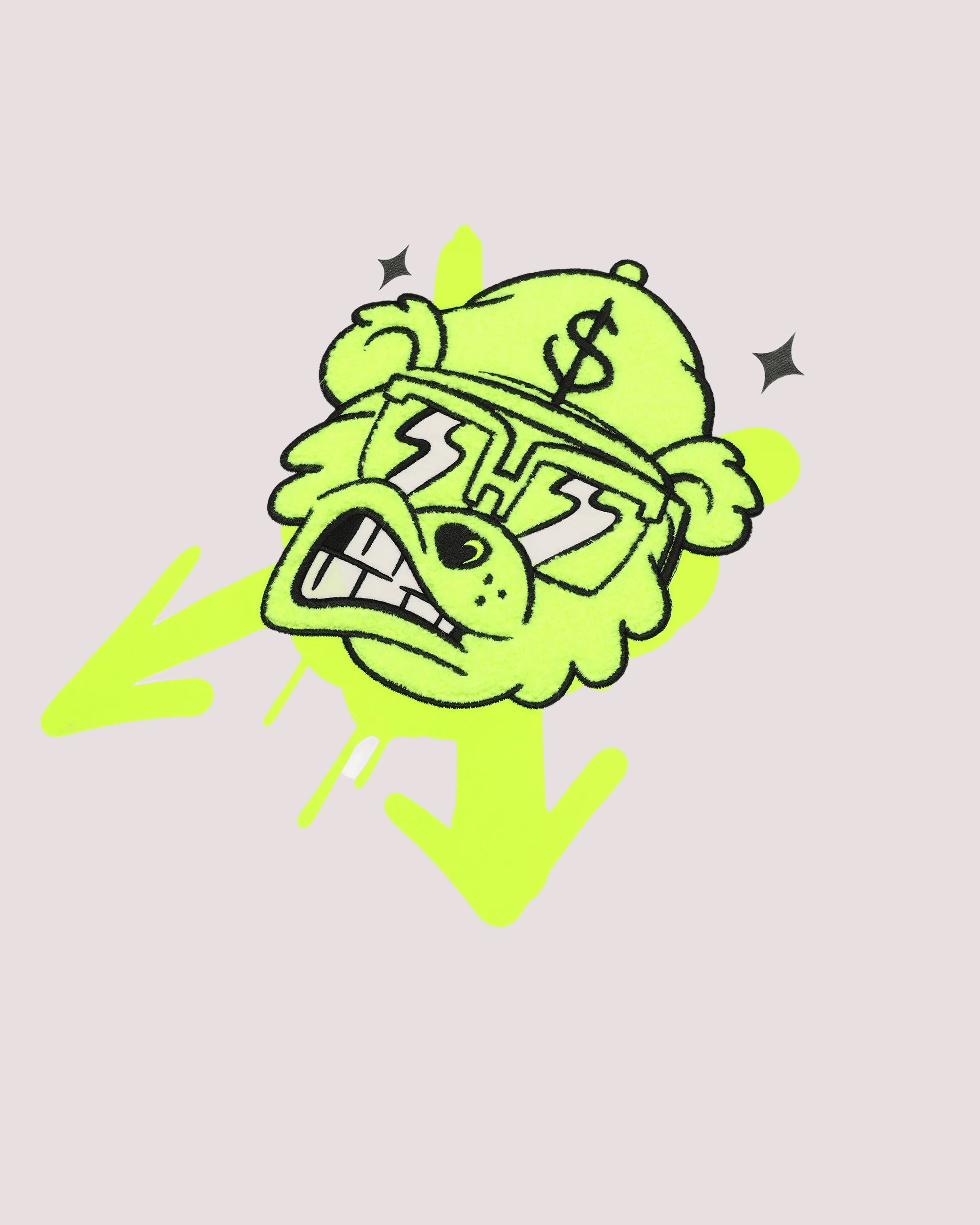 Materiali: 100% cotoneTESSUTO: Tessuto Jersey pesante (100% Cotone)PESO: 230 GSMDETTAGLI: Costina in cotoneSTAMPA: Squalo + Frecce: SerigrafiaAPPLICAZIONI E RICAMI: * Orso: Patch in Tufting (effetto spugna)Sprayground: Patch in silicone