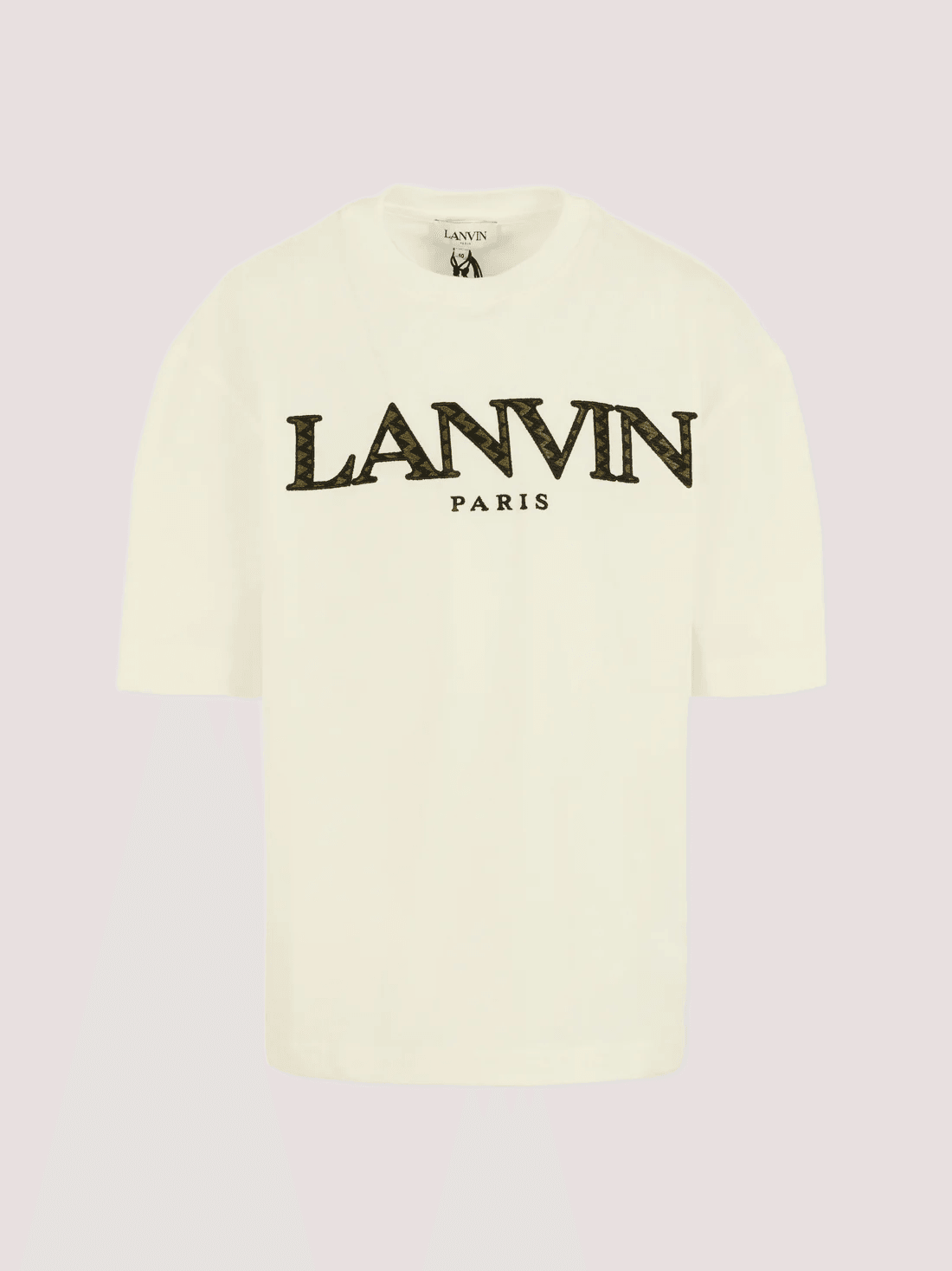 T-shirt avorio del brand Lanvin Petite, realizzata in morbido cotone organico, per un look casual super cool. Presenta maniche corte e girocollo a costine. È decorata con logo Lanvin ricamato sulla parte anteriore.Composizione: 100% cotone Organico