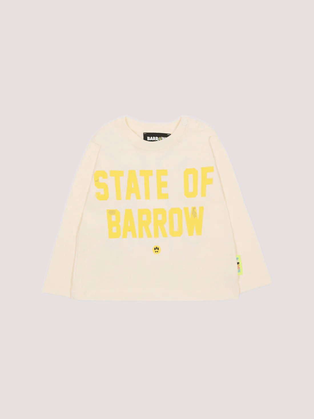 T-shirt avorio in cotone a maniche lunghe, con girocollo a costine e chiusura con bottoni automatici sulla spalla. È decorata con scritta sulla parte anteriore e stampa Bear sul retro. È dotata di portachiavi giallo logato.Composizione: 100%cotone
