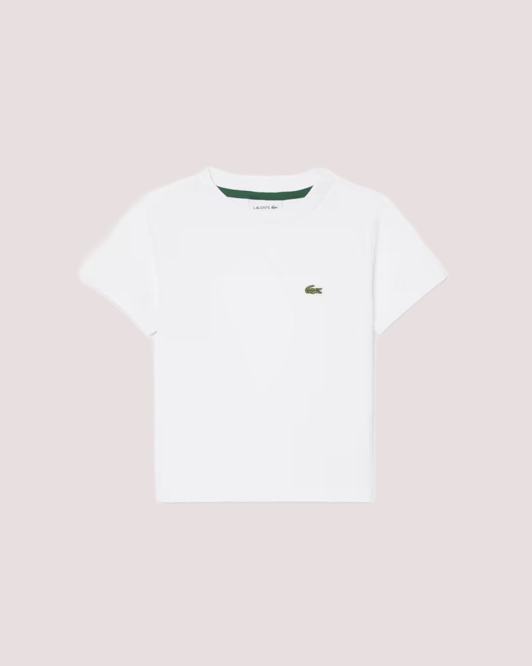 Regala ai tuoi bimbi dei capi basic belli e resistenti. Leggera, comoda e super traspirante, questa t-shirt firmata Lacoste è perfetta per qualsiasi attività. Perché non provarla in colori diversi? Cè limbarazzo della scelta!Cotone organico GirocolloCoccodrillo ricamato sul petto