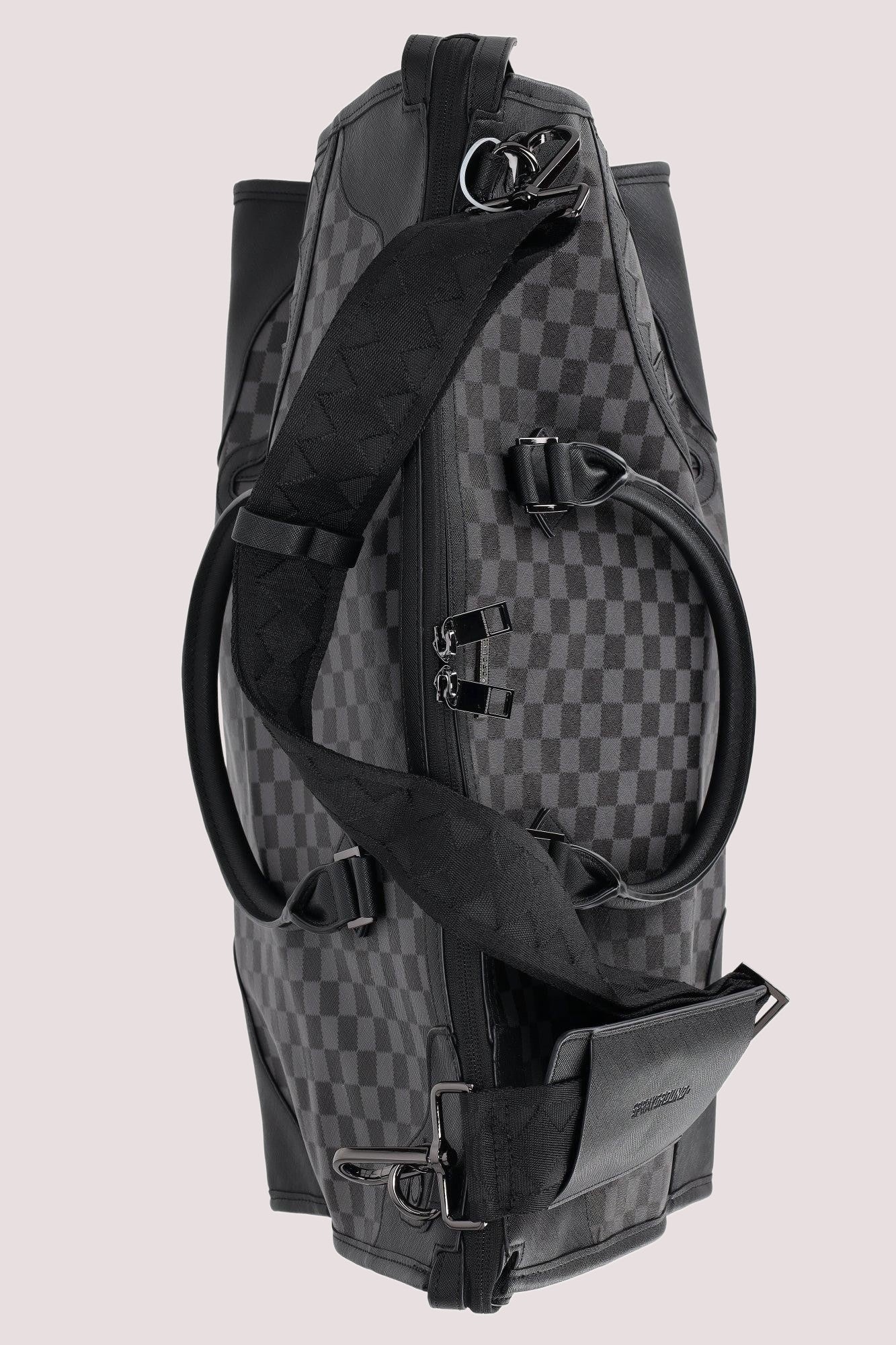BORSONE MIDNIGHT CHATEAU PYRAMIDApertura superiore con cernieraTasca con cerniera sul pannello posterioreTasca laterale con cernieraCinghia regolabile e removibile per una misura personalizzata con costruzione rinforzata per tracollaCuscinetto per spalla con logo impresso per il massimo comfortCerniere dorate e argentate con accessori in metalloTasca nascosta con cernieraInternoAmpia tasca con cernieraDue ampie tasche a slipDimensioni: 51 cm x 20 cm x 32 cmMateriali: 100% polyvinyl chloride