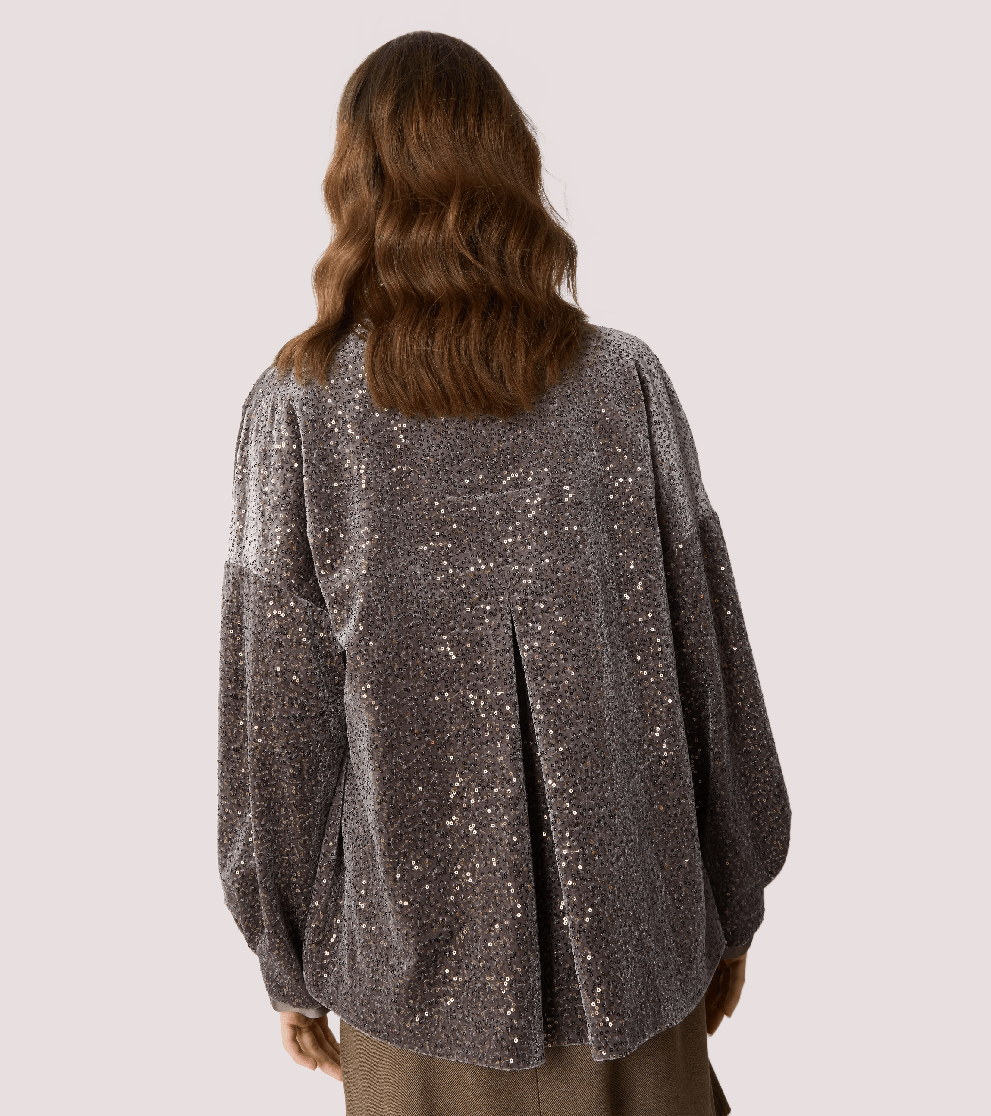 Scegli la giacca realizzata in velluto stretch e impreziosita da micro paillettes tono su tono.Il modello ha linea morbida con scollo a V, profili in raso e maniche ampie. Un capo luminoso e raffinato per un look dal fascino glamour.