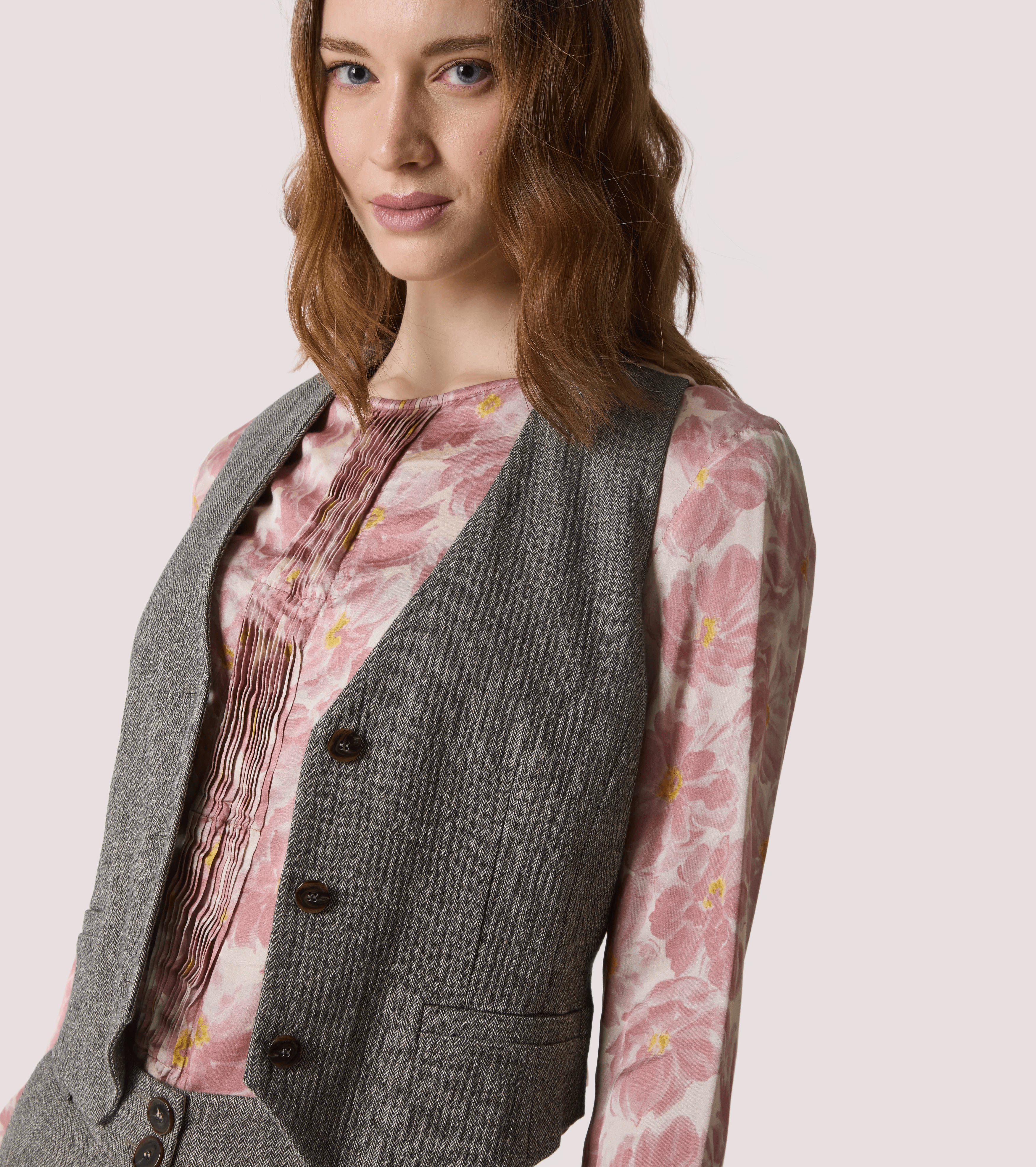 Scegli il gilet realizzato in tweed di misto cotone stretch dalla texture compatta e raffinata.Il modello ha scollo a V, tasche a filetto e chiusura con bottoni. Un capo dal design sartoriale per un look dal fascino audace e contemporaneo.