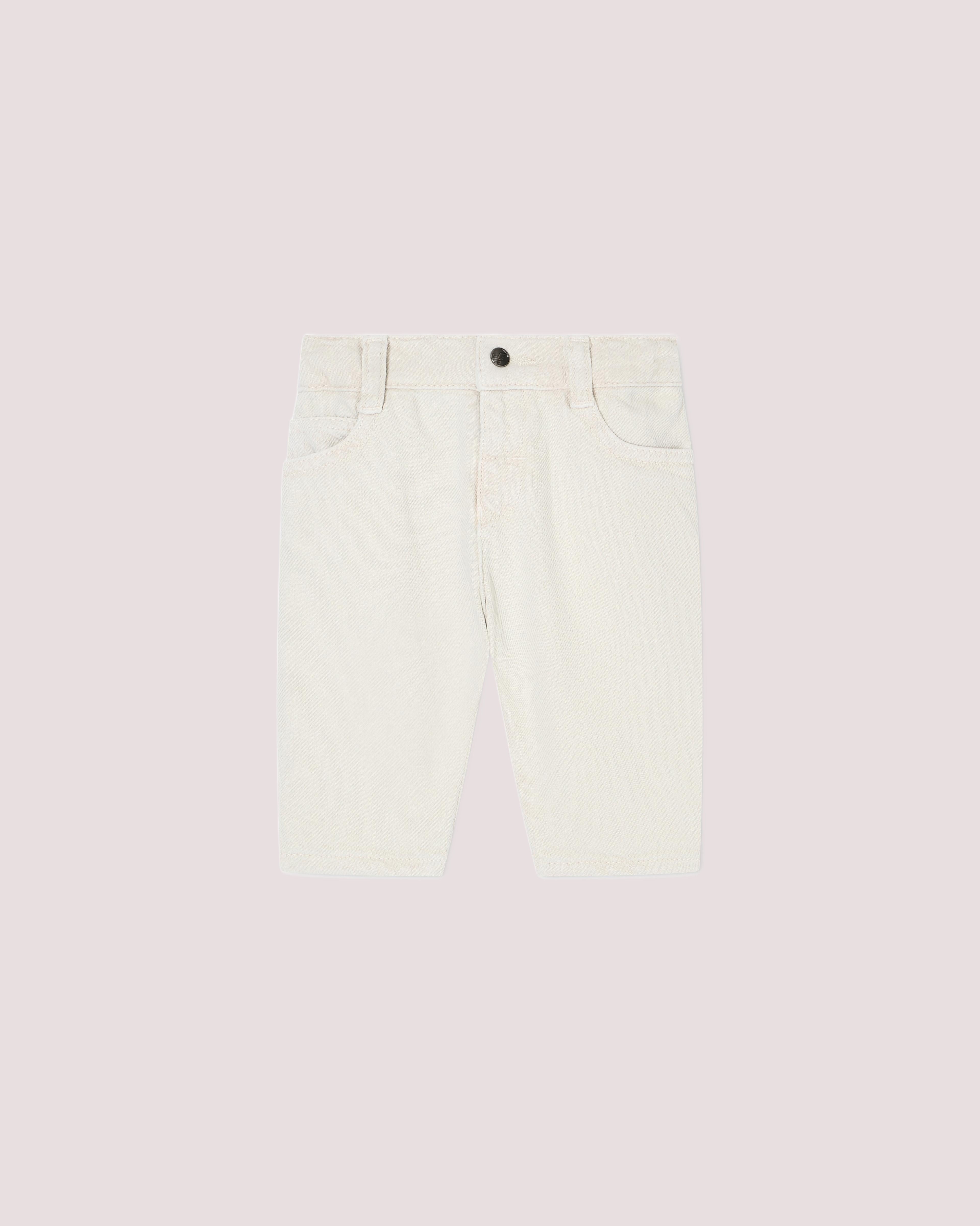 Jeans modello cinque tasche con retro vita elasticizzato. Realizzati in drill di puro cotone: un tessuto cardato ad armatura diagonale dalla mano strutturata simile al denim, ma tinto in pezza e non in filo.Tessuto: 100% cotone