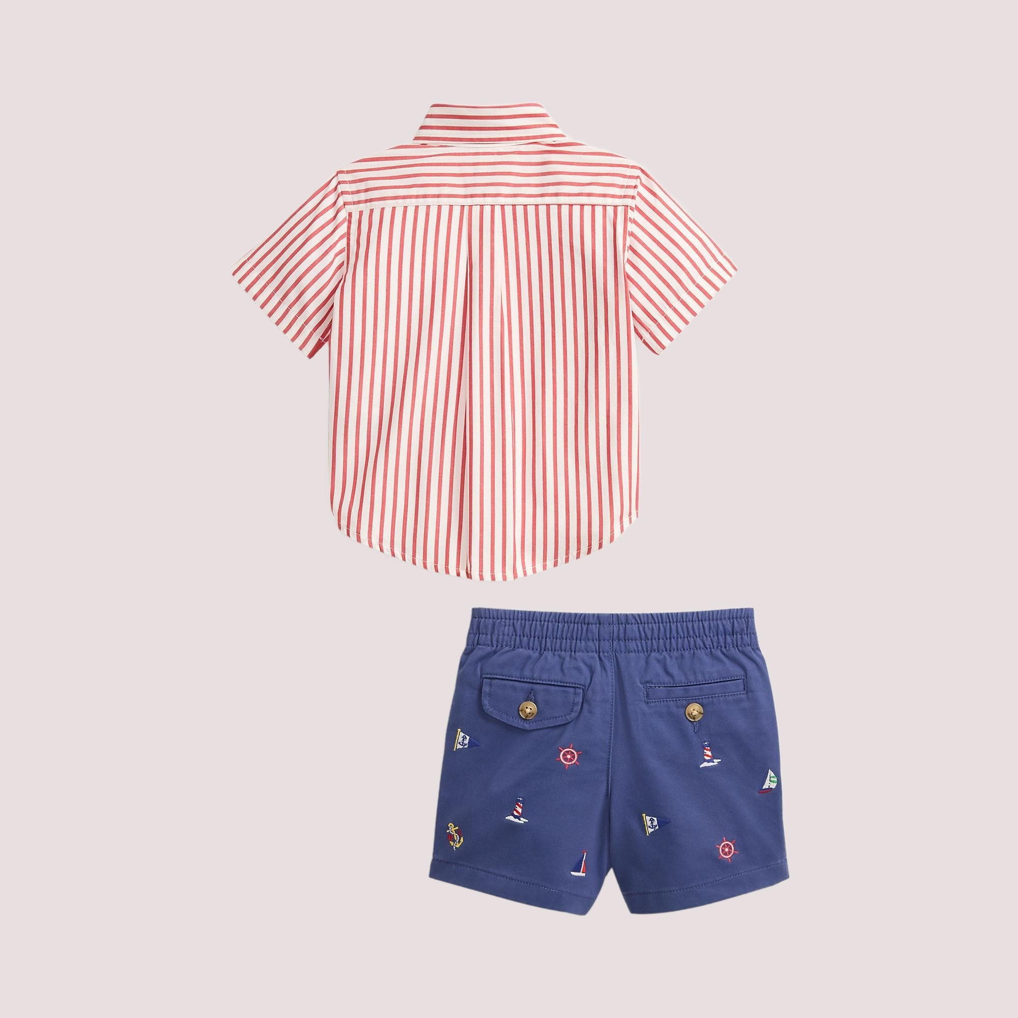 La camicia in popeline di questo completo è stata appositamente sviluppata per conferire al tessuto di cotone una maggiore flessibilità. Gli shorts coordinati Polo Prepster sono realizzati in tessuto Flex Abrasion di Ralph Lauren, che utilizza la tecnologia PUREPRESS antipiega. Oltre alle loro proprietà elastiche e durevoli, offrono una maggiore resistenza all'abrasione e allo strappo.