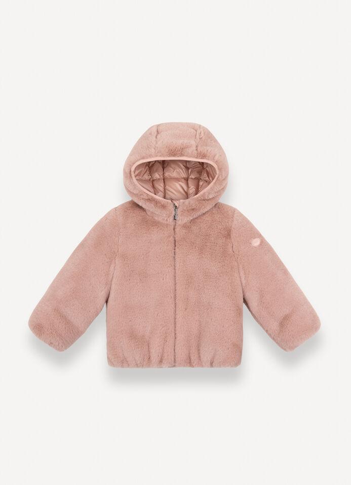Pensato per le bambine, questo piumino in morbida pelliccia sintetica avvolge con calore e morbidezza. Il cappuccio completa il design con una protezione extra, rendendolo ideale per le giornate fredde senza rinunciare allo stile.