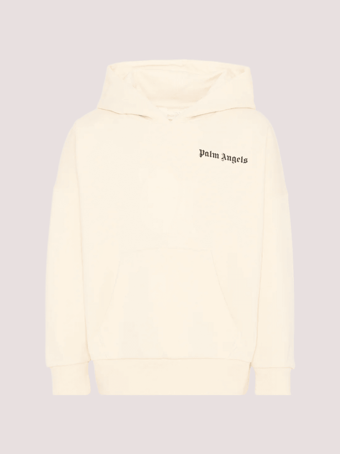 Felpa con cappuccio in cotone garzato, morbida e compatta al tatto. Il modello presenta cappuccio doppiato, maniche con spalle leggermente scese e ampia tasca a marsupio frontale. Il logo gotico è stampato in piccolo sul petto e in versione maxi-back a contrasto sul retro. Polsini e fondo a costine completano il profilo streetwear con volumi regolari e puliti.