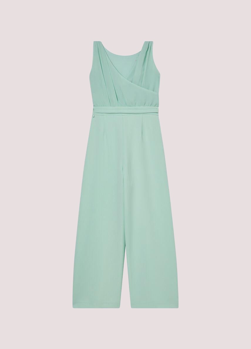 Tuta elegante in crêpeDettaglio incrociato sul retroCintura sottile in tono colorePerfetto per eventi o cerimonie