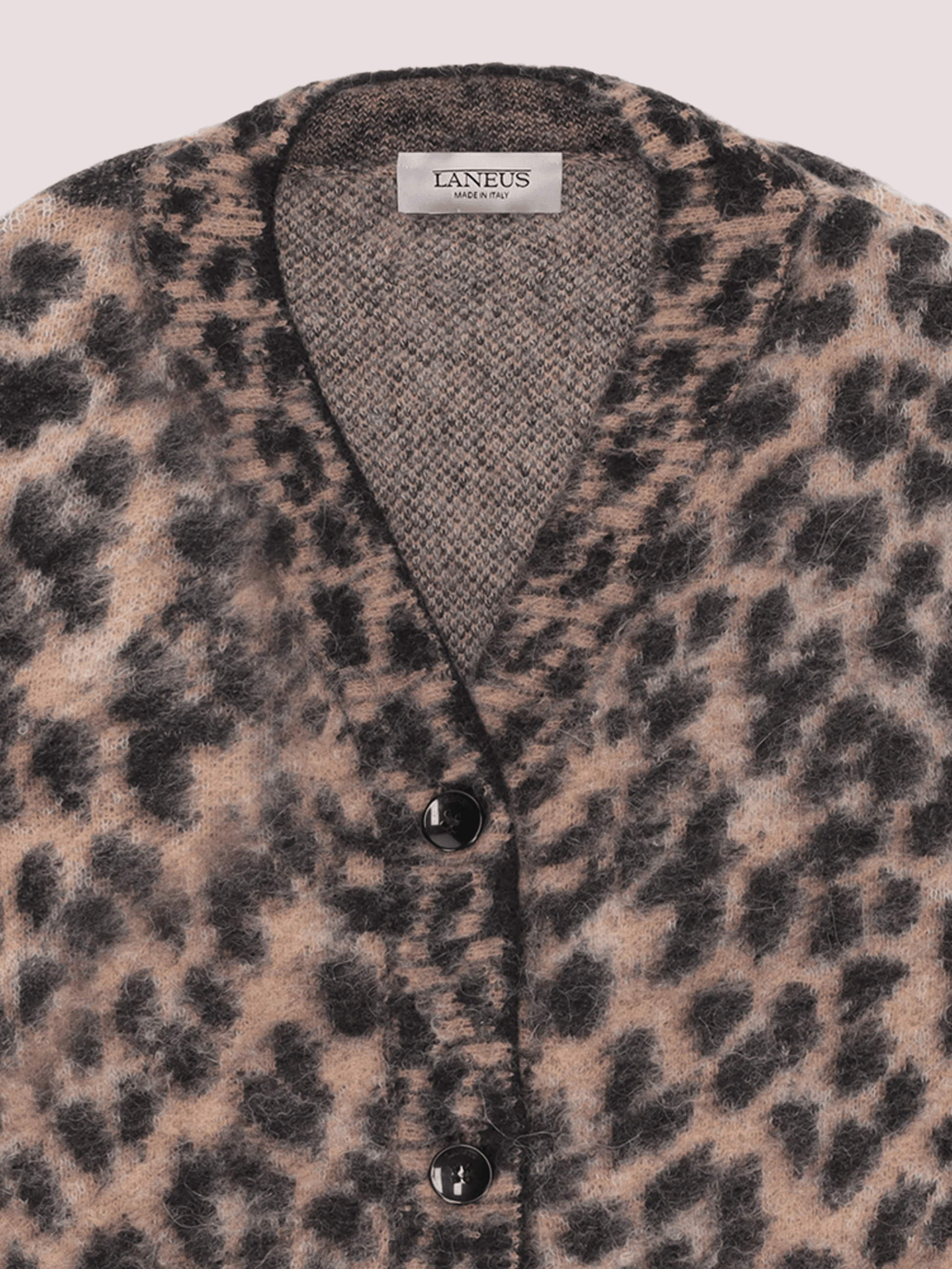 Un capo avvolgente e grintoso, perfetto per distinguersi. Questo cardigan in maglia presenta una texture soffice e calda, con fantasia leopardata all-over e chiusura frontale. Realizzato in misto alpaca, garantisce leggerezza e morbidezza. Il fit comodo e il look deciso lo rendono ideale per le piccole con stile.27% FIBRA POLIACRILICA/ACRILICO- POLICARBONATO 53% FIBRA POLIAMMIDICA/NYLON 20% ALPACA