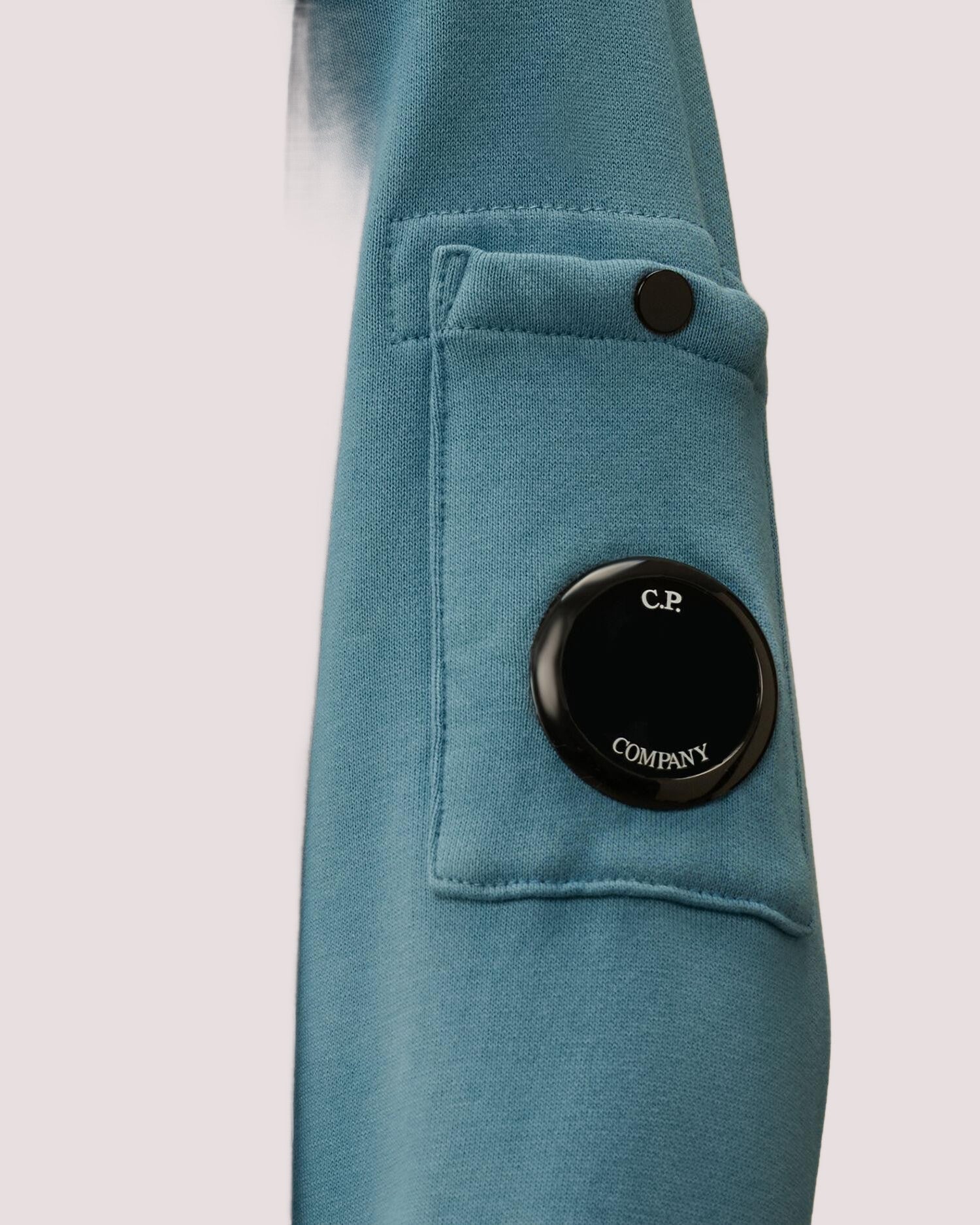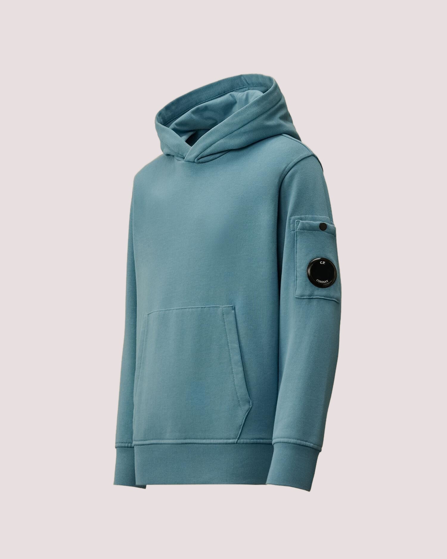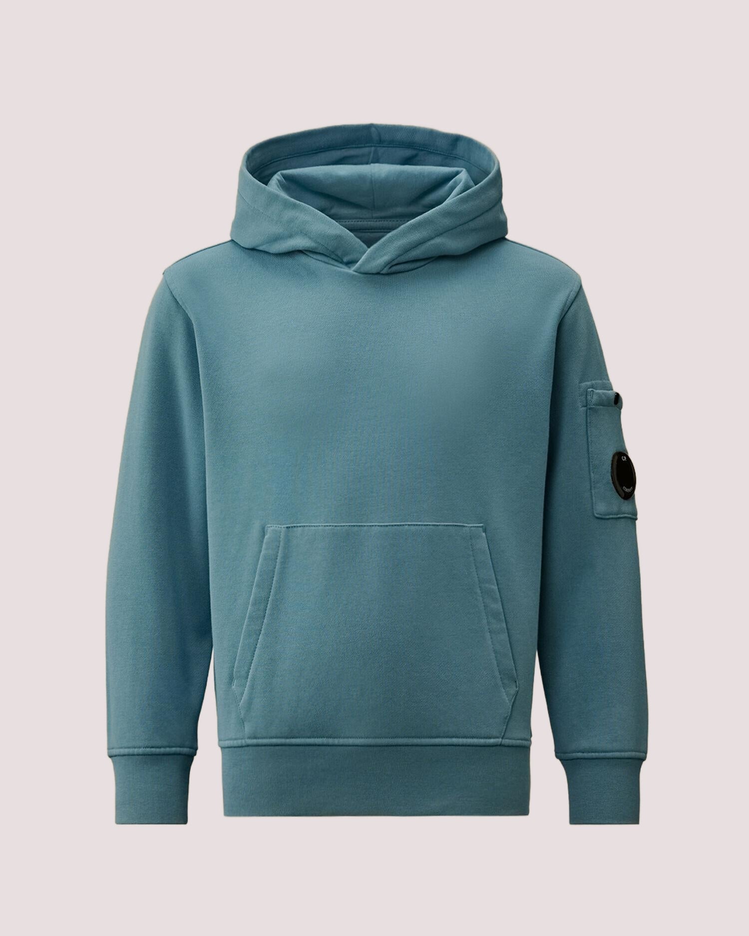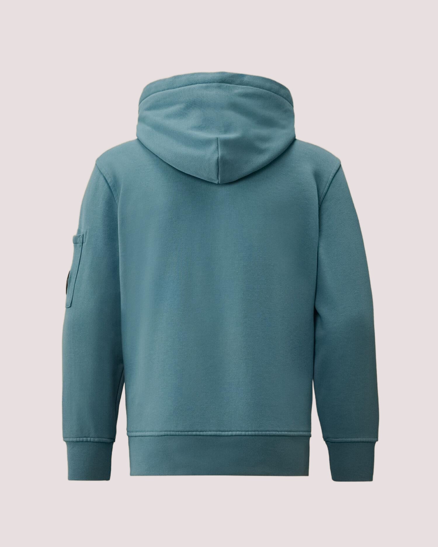 Felpa con cappuccio realizzata in diagonal fleece, un cotone garzato a trama diagonale. Il modello presenta un cappuccio regolabile e l’iconica Lente di C.P. Company. Rifinita con polsini e orlo a costine. Regular fit.