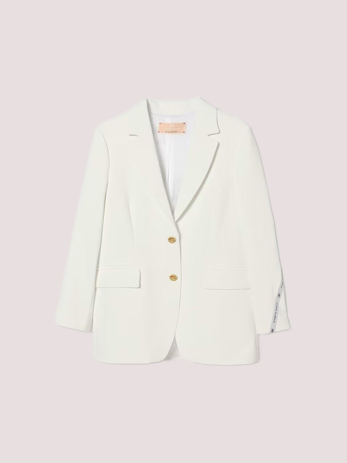 Perfetta da abbinare alla gonna coordinata per un completo da cerimonia impeccabile, può essere reinterpretata anche con una camicia romantica o una blusa minimal per un risultato più versatile. Ideale per feste, ricorrenze, eventi eleganti e celebrazioni importanti, questa giacca diventa il punto focale del look, capace di coniugare sobrietà e personalità in ununica soluzione stilistica.Giacca monopetto in crepeRever classicoBottoni frontali in metallo doratoTasche con pattaNastro logato applicato su una manicaLinea leggermente allungataSuggerimenti duso: cerimonia, eventi eleganti, feste, coordinato con gonna abbinata
