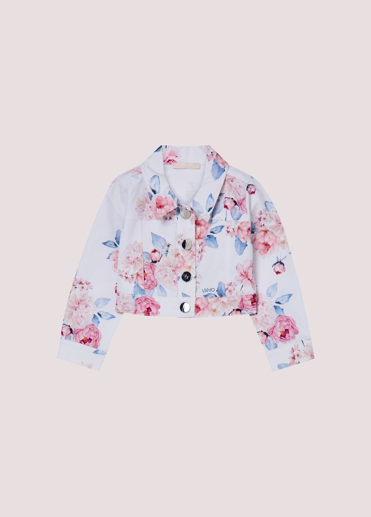 Giubbotto corto in drill stampatoMotivo florealeChiusura con bottoni logati