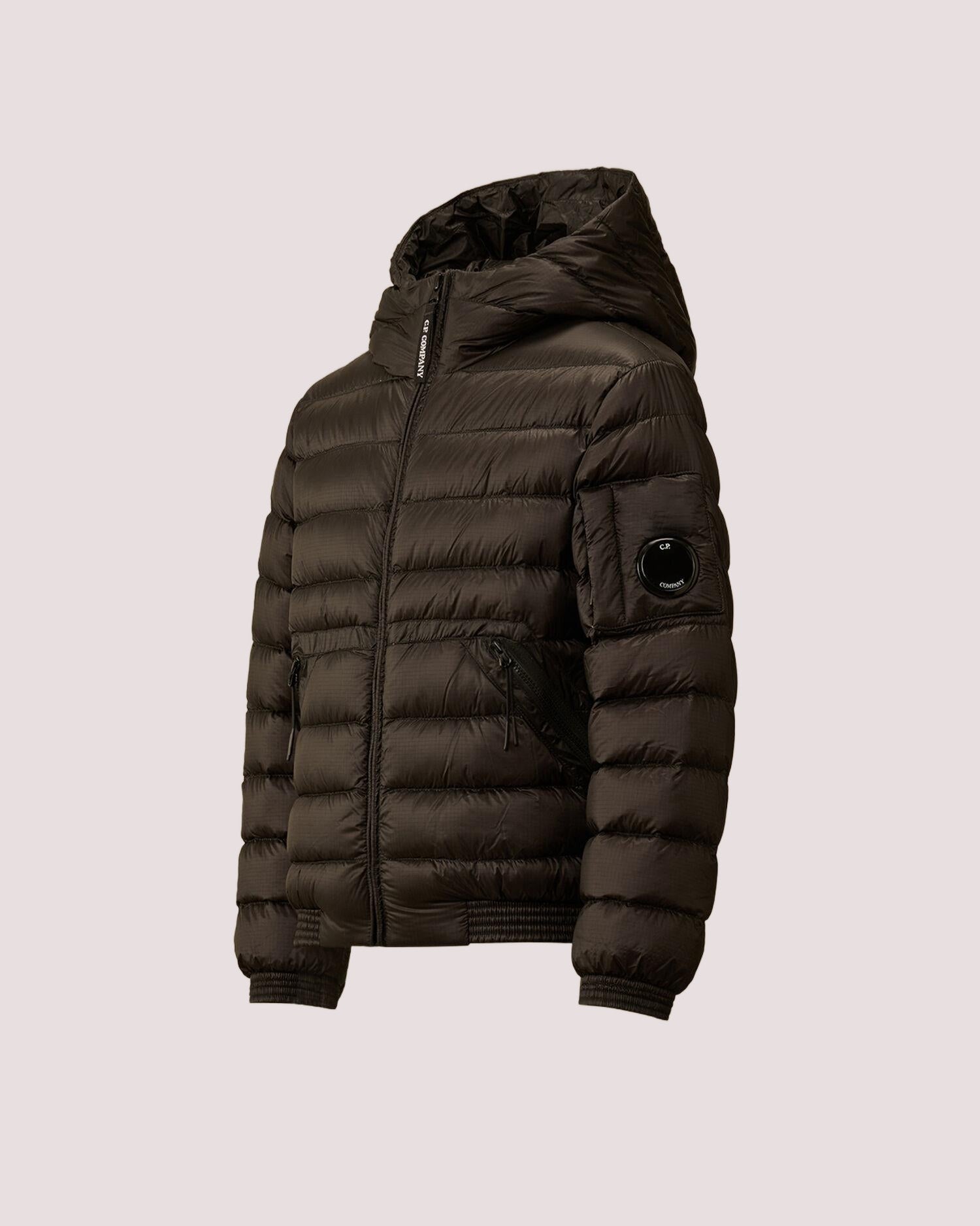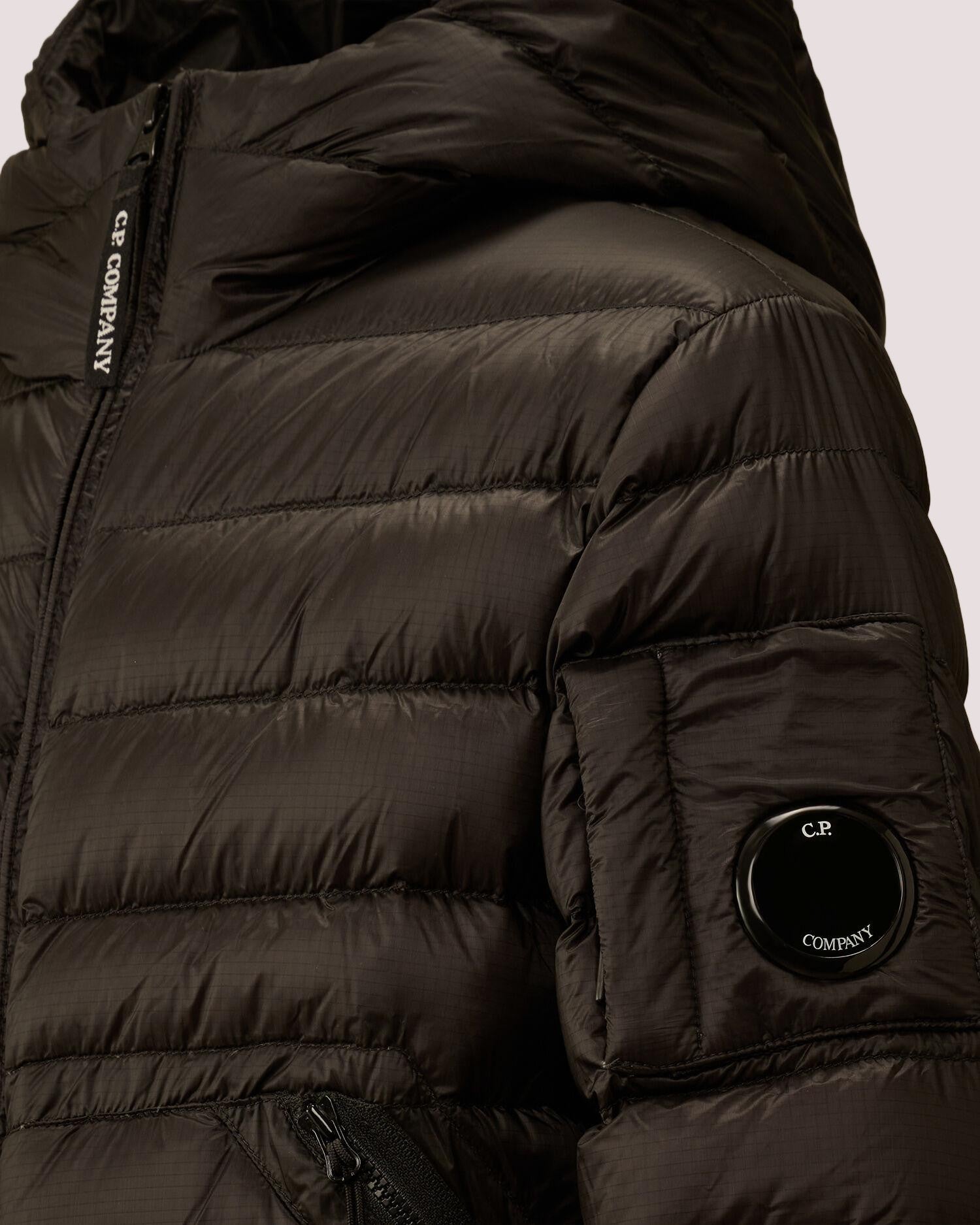 Piumino leggero realizzato in D.D. Shell, un nylon micro-ripstop opaco da 7 denari. La leggerezza e la trasparenza del tessuto mettono in risalto la struttura del capo, mentre il processo di iniezione diretta della piuma garantisce un isolamento ottimale. Il design presenta un cappuccio regolabile, chiusura full zip e tasche laterali con zip. Completato da polsini e orlo elasticizzati, lΒiconica Lente di C.P. Company e cuciture a contrasto. Regular fit.