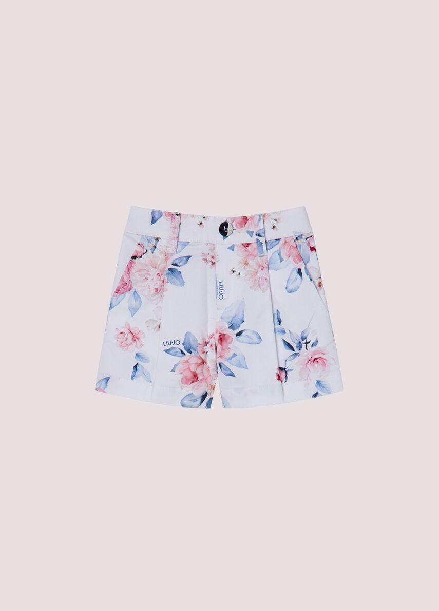 Pantaloni corti in drill stampatoMotivo florealeComode taschPence sul davantChiusura con bottone