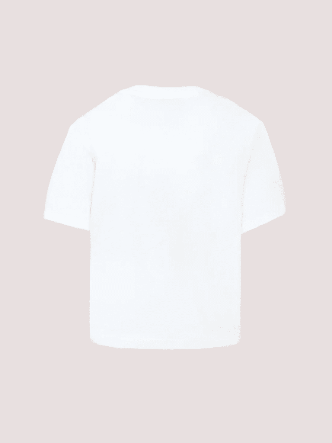 T-shirt bianca del brand Lanvin Petite, realizzata in morbido cotone organico. Presenta maniche corte e girocollo a costine. È decorata con logo e iconiche Curb Basket ricamate e stampate sulla parte anteriore.Composizione: 100%cotone Organico