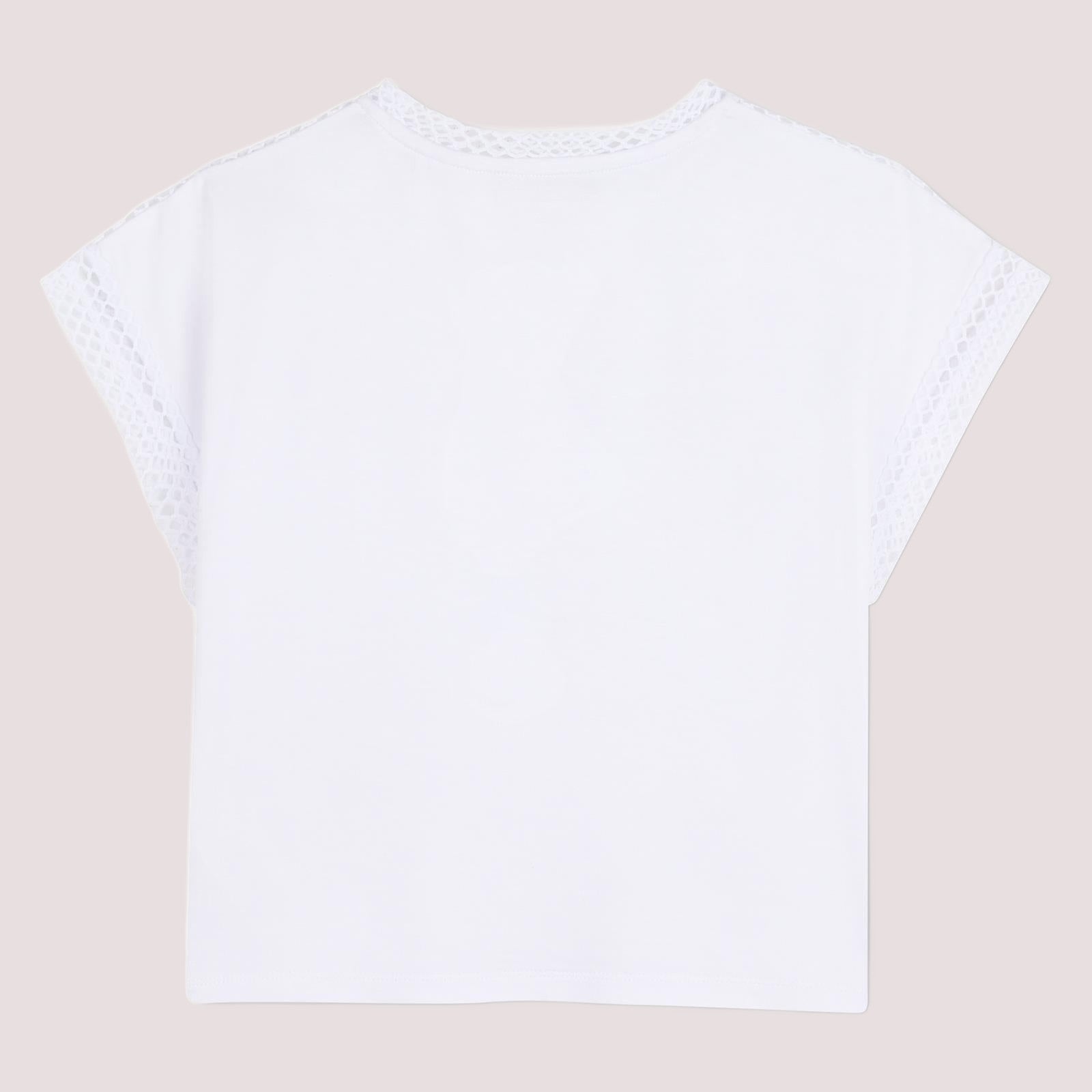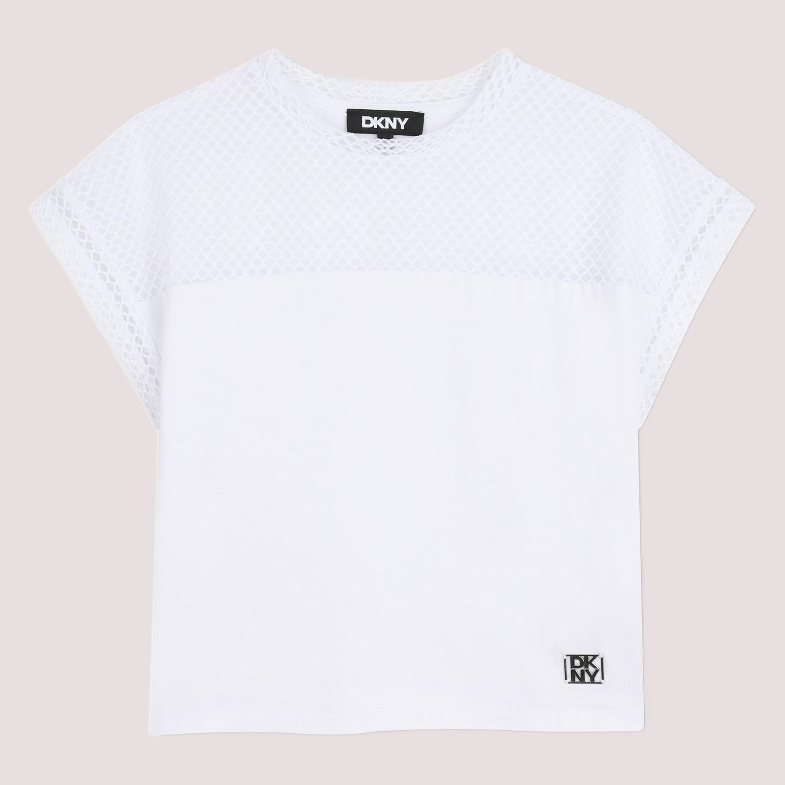 T-shirt a maniche corte in jersey, 95% viscosa, 5% elastan. Rete fantasia nella parte superiore della t-shirt. Targhetta metallica DKNY sul davanti.